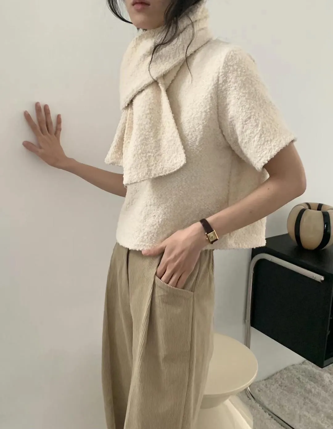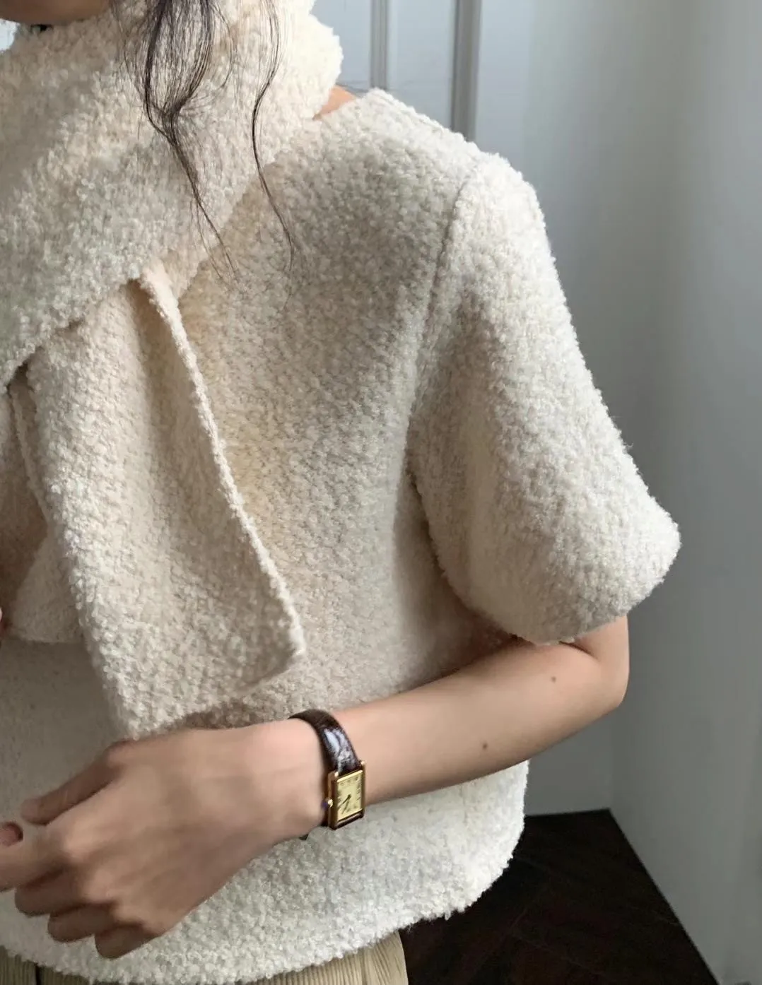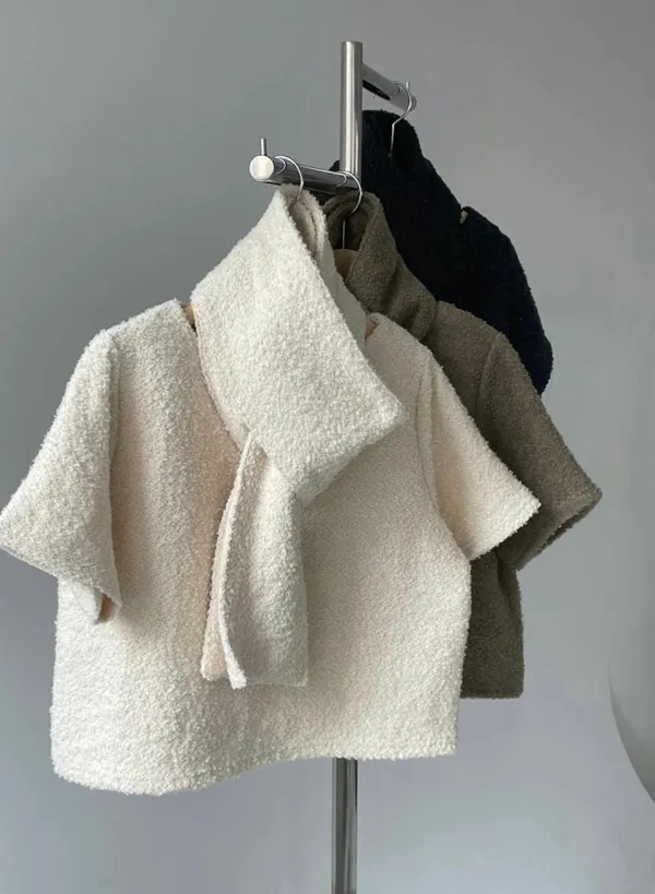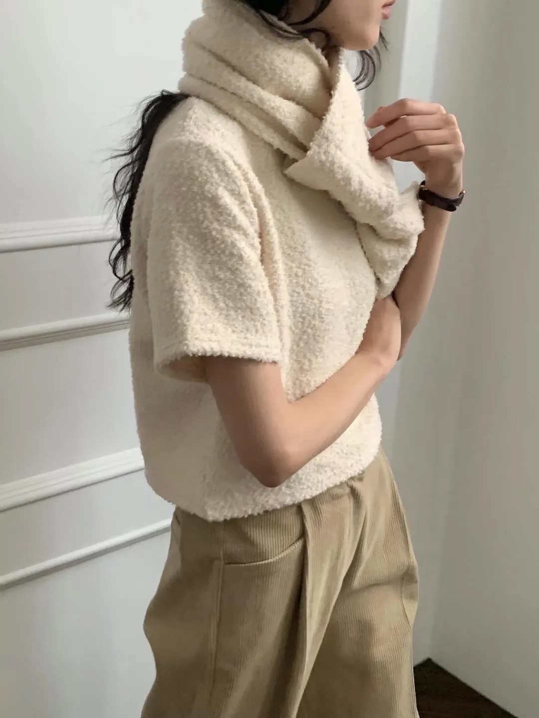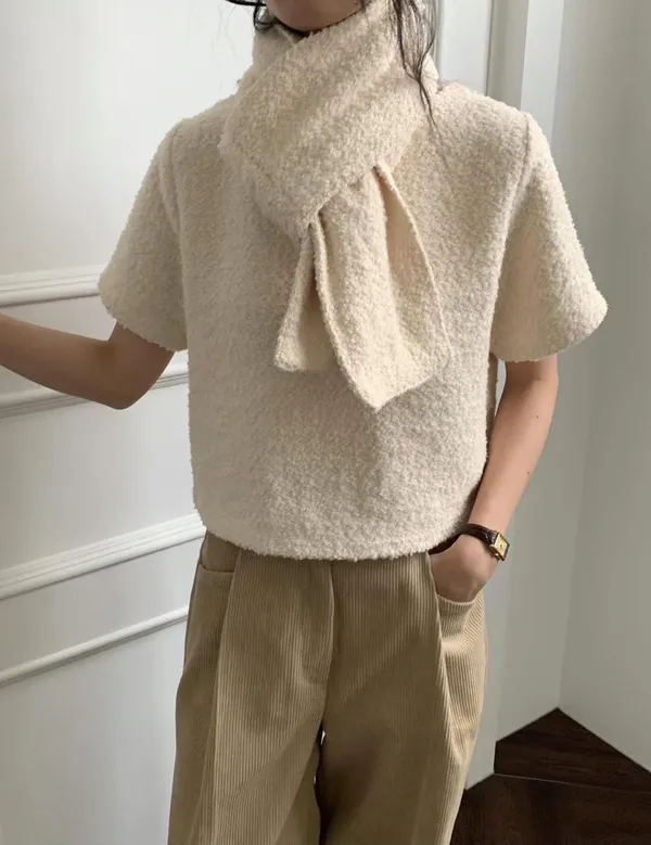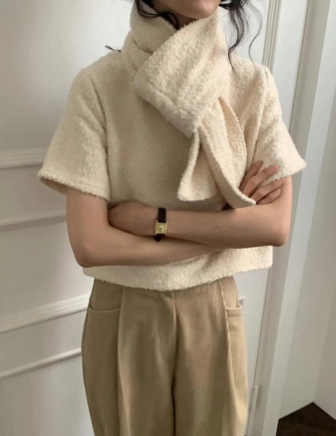 【現貨出清】韓國 一秒高級羊羔毛圍巾上衣套裝組_B12