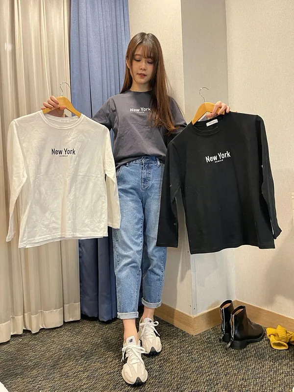 【特價】韓國極簡風鈕約字樣薄長Tee