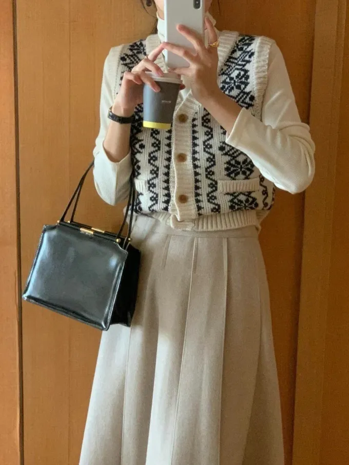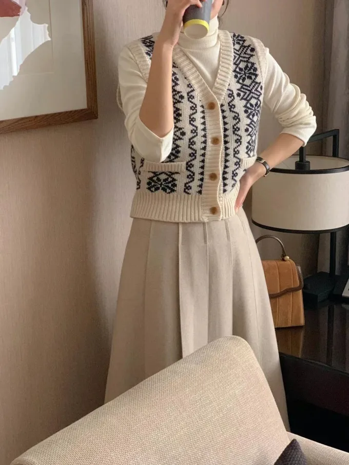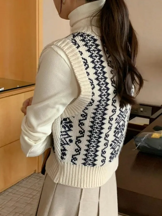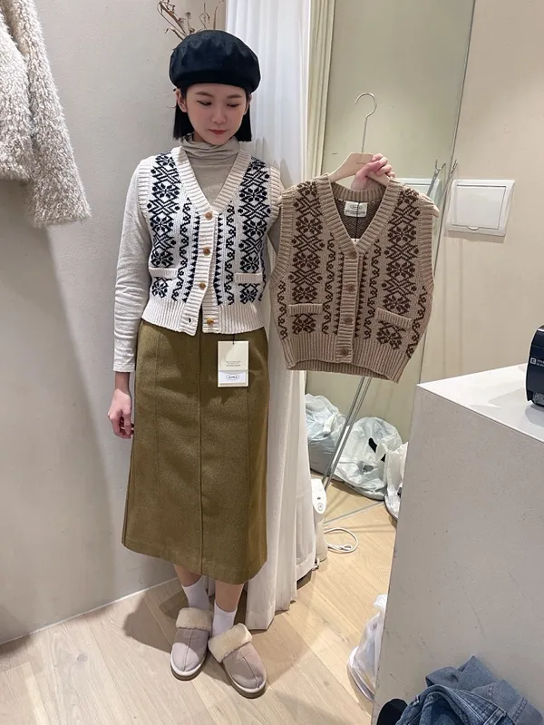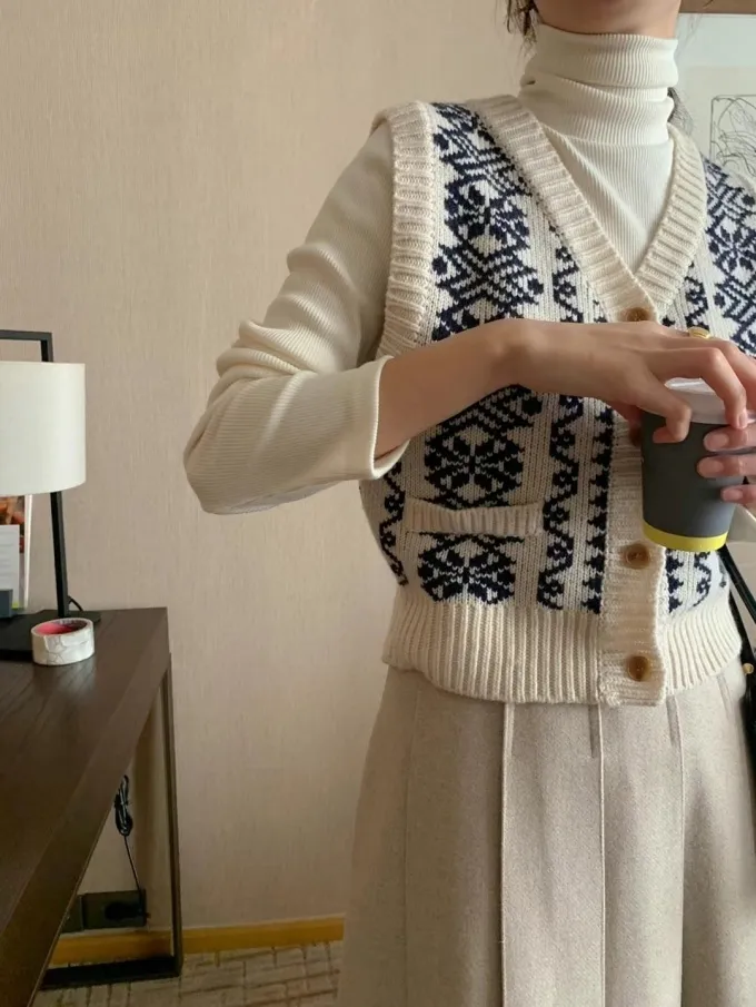 【現貨】韓國 圖騰V領排釦針織背心