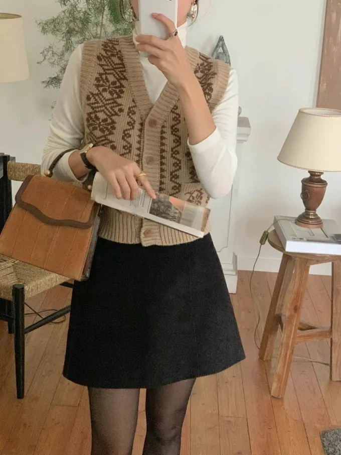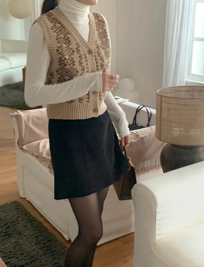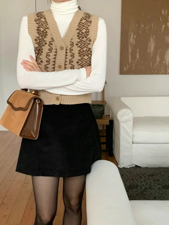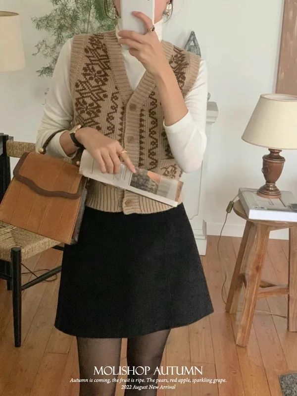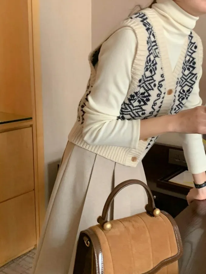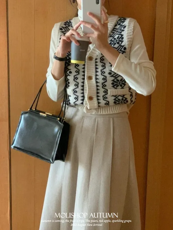 【現貨】韓國 圖騰V領排釦針織背心