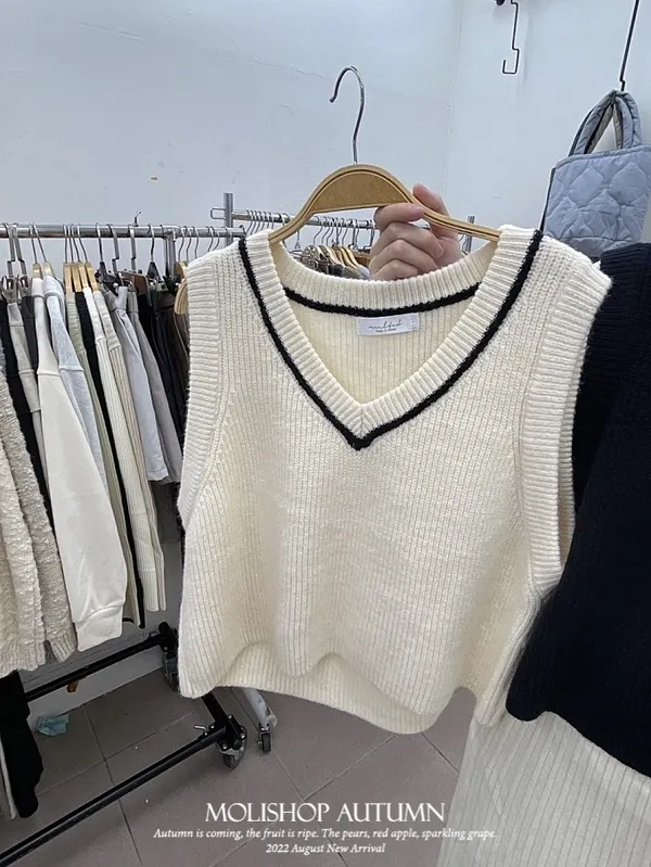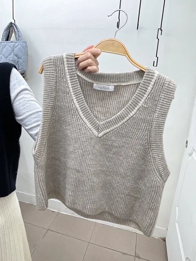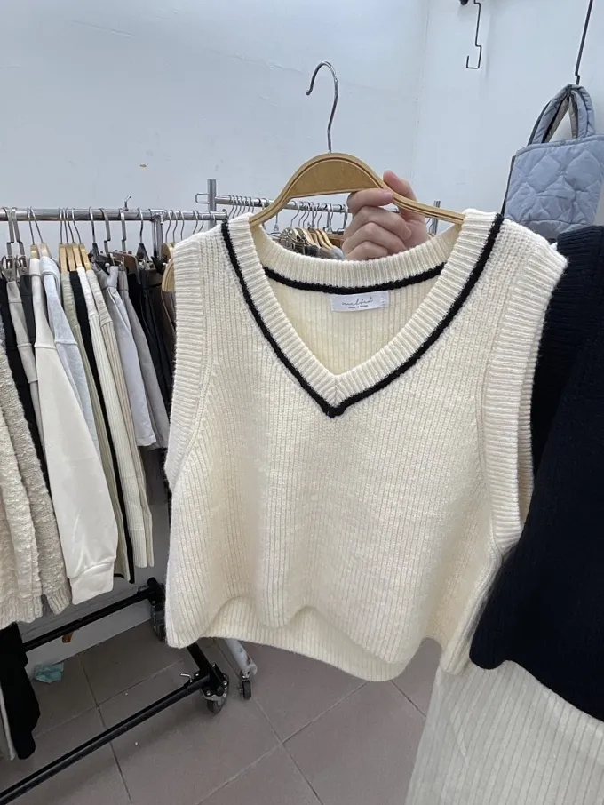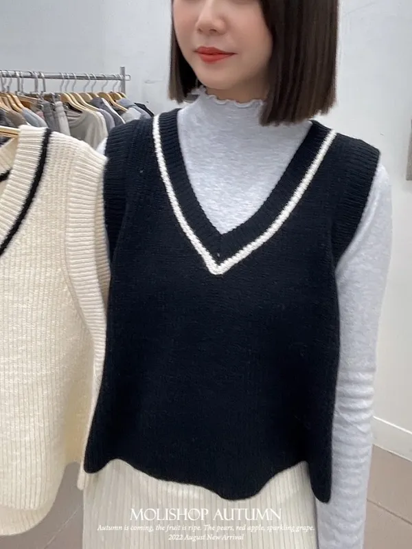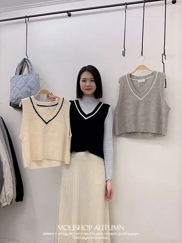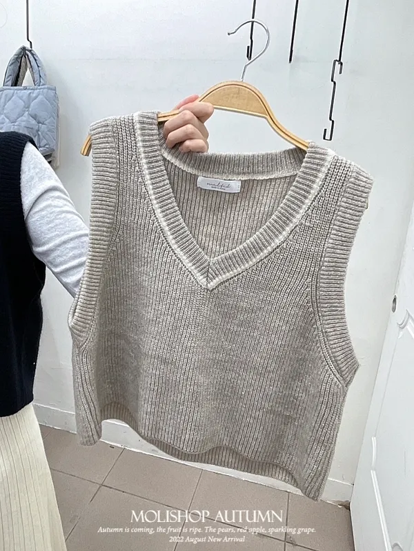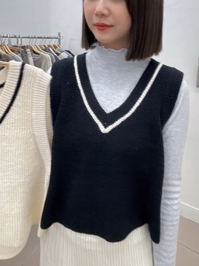 學院風V領針織背心_D03