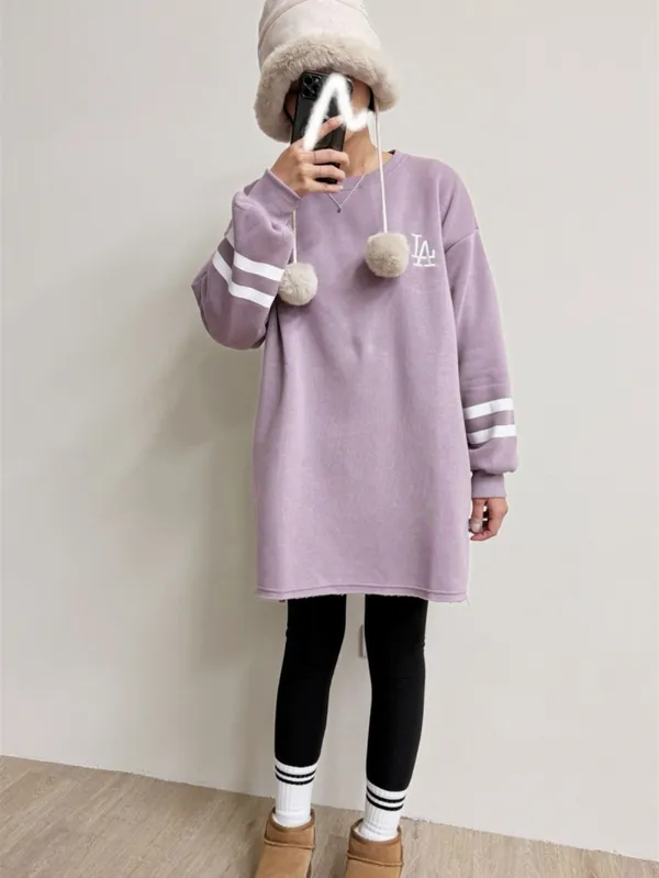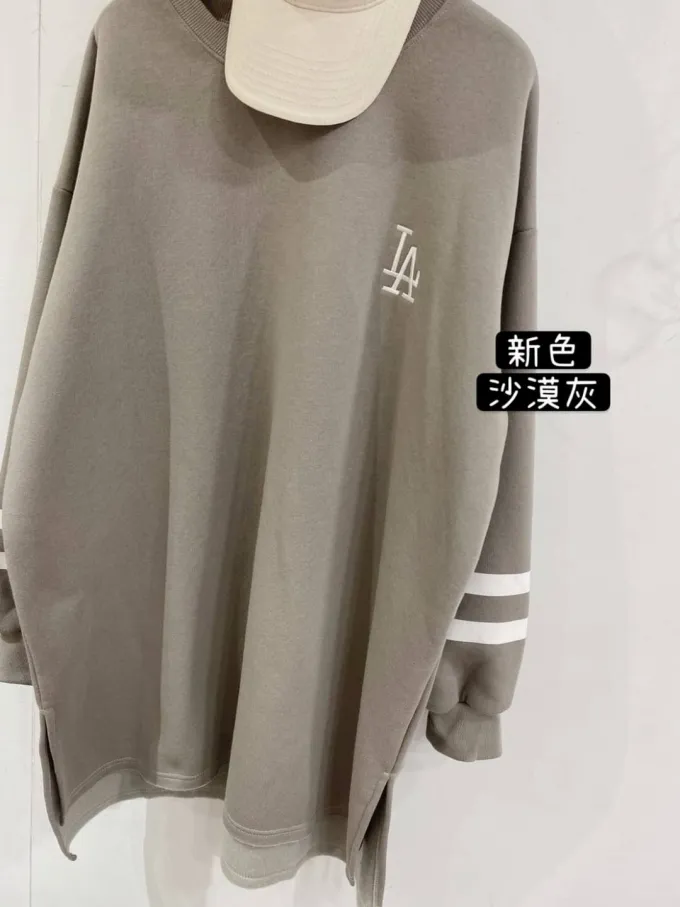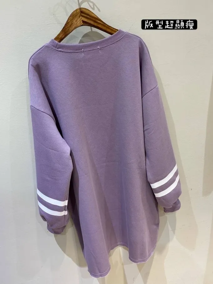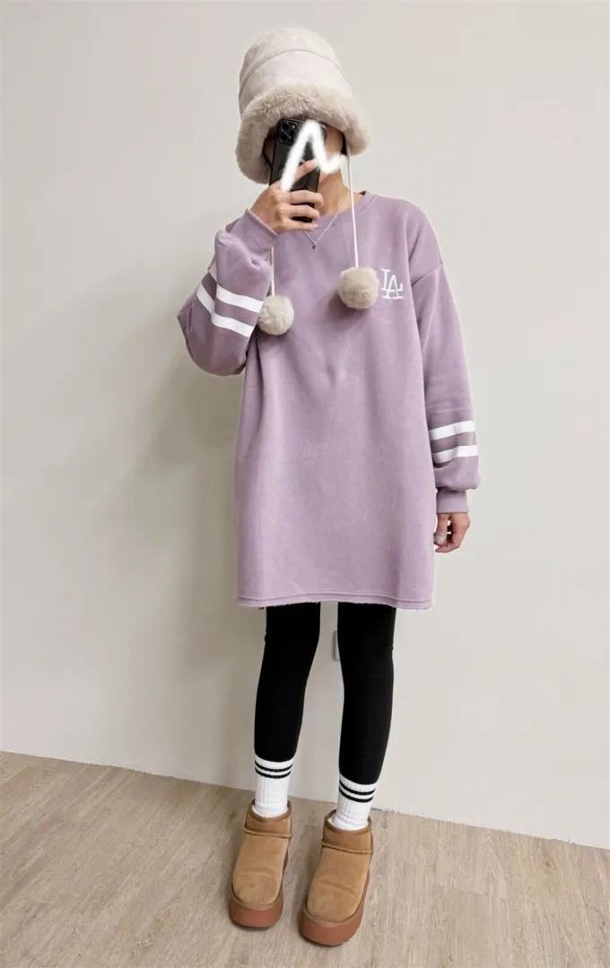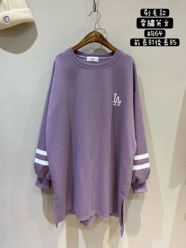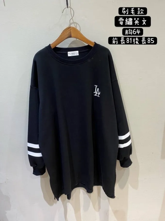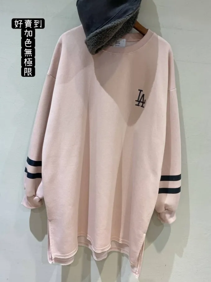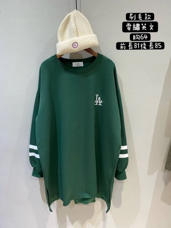 【福利標】韓國 袖槓槓電繡LA微刷毛長版上衣_福利