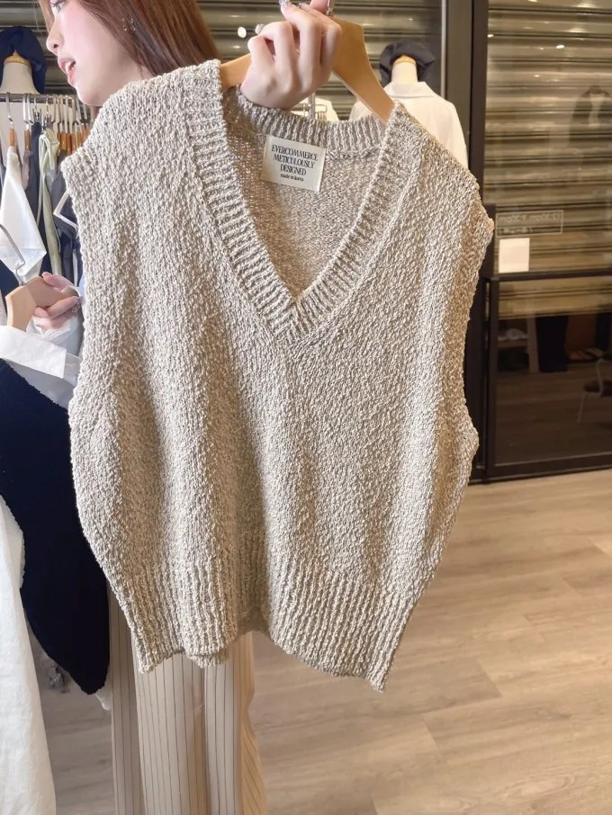 【現貨】韓國 親膚粗針織落肩背心_J41
