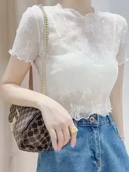 【現貨】捲邊蕾絲上衣_J36