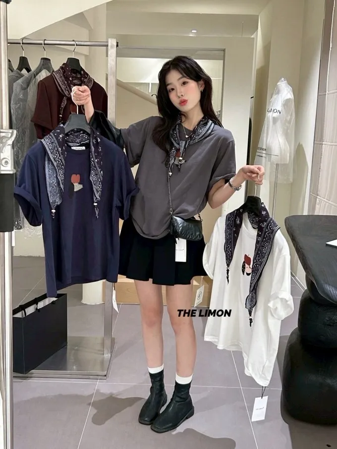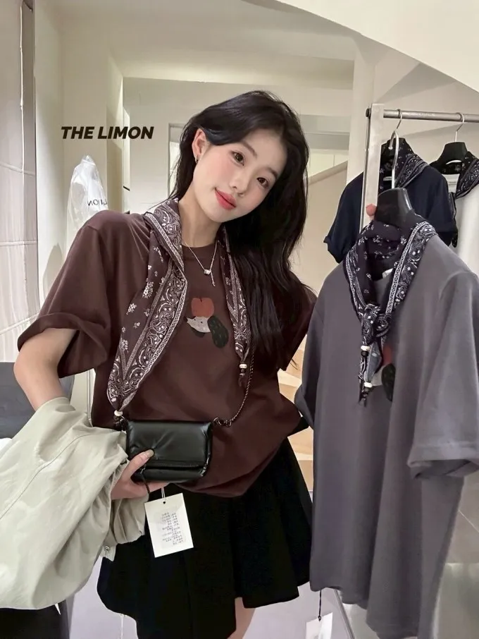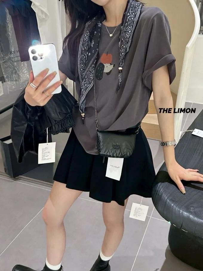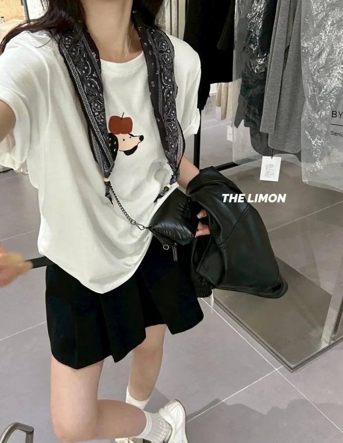 簡齡設計雲朵絨小狗印花短T(配絲巾)