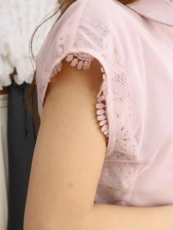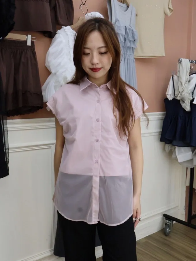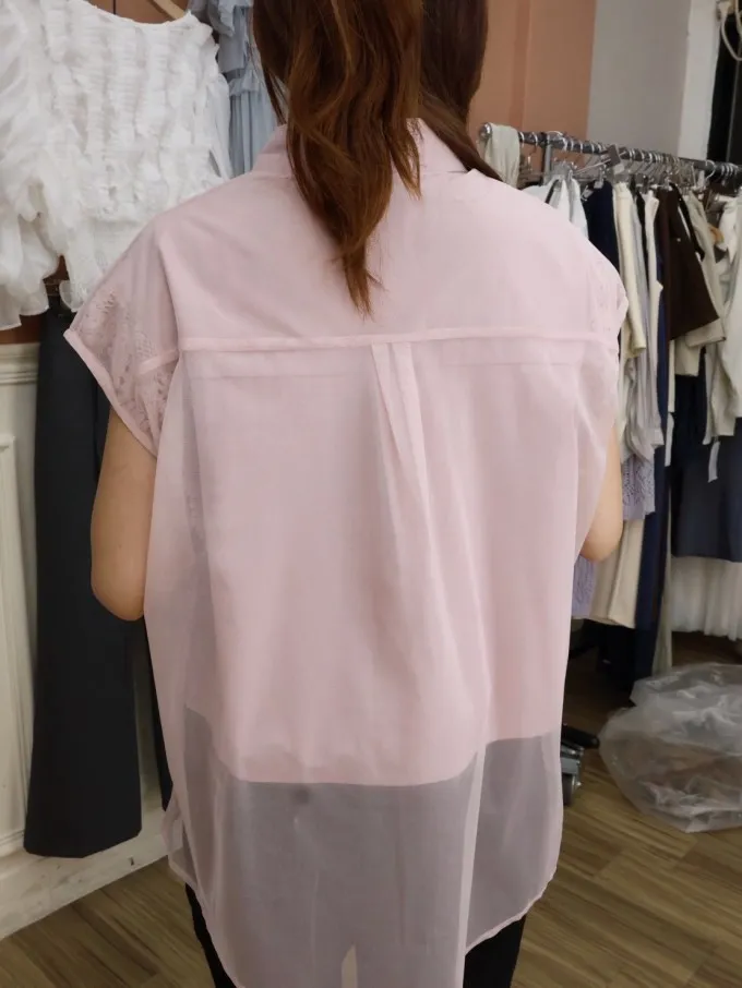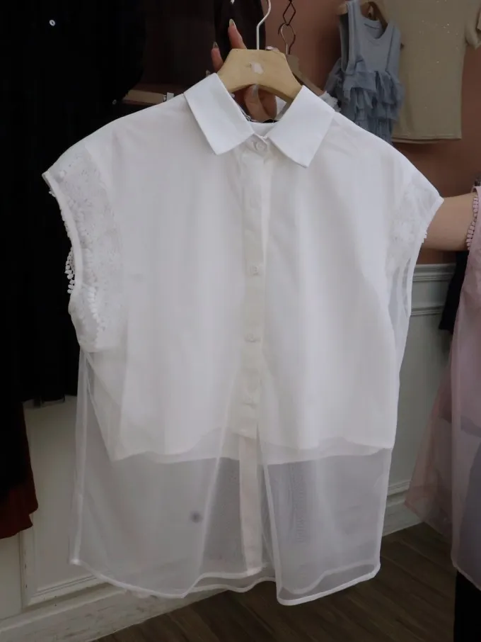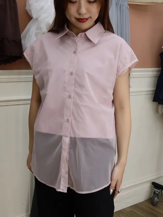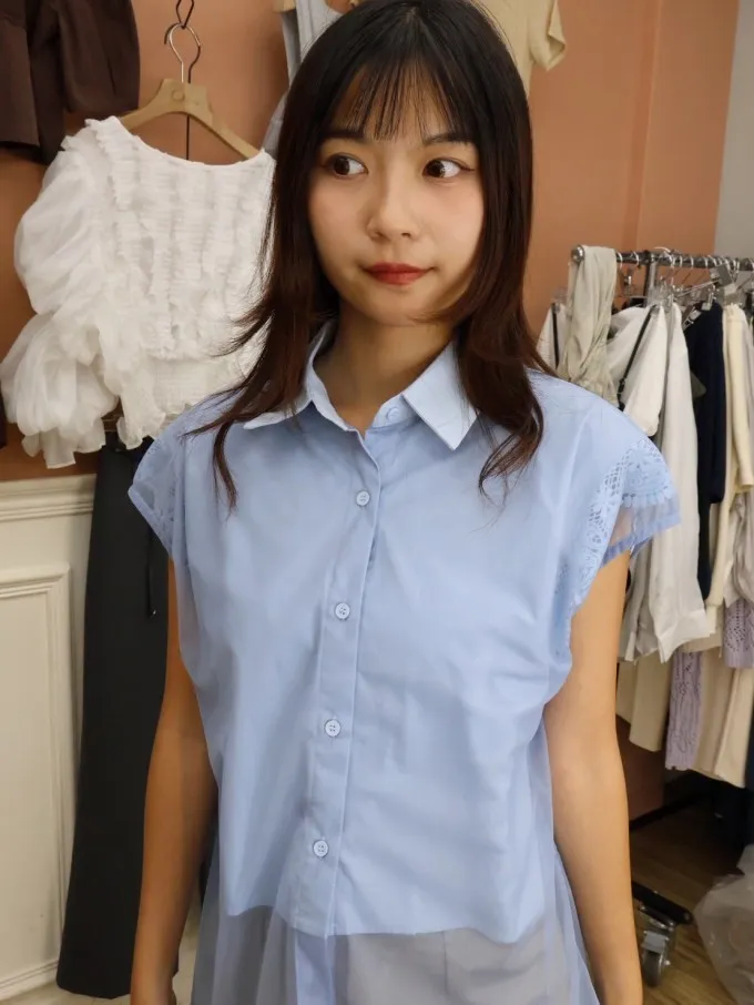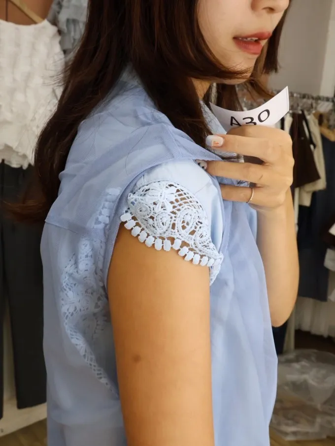 蕾絲拼接無袖襯衫_A30