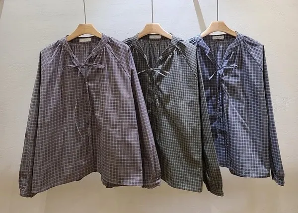 韓國 氣質格紋綁帶襯衫_D67