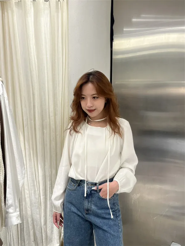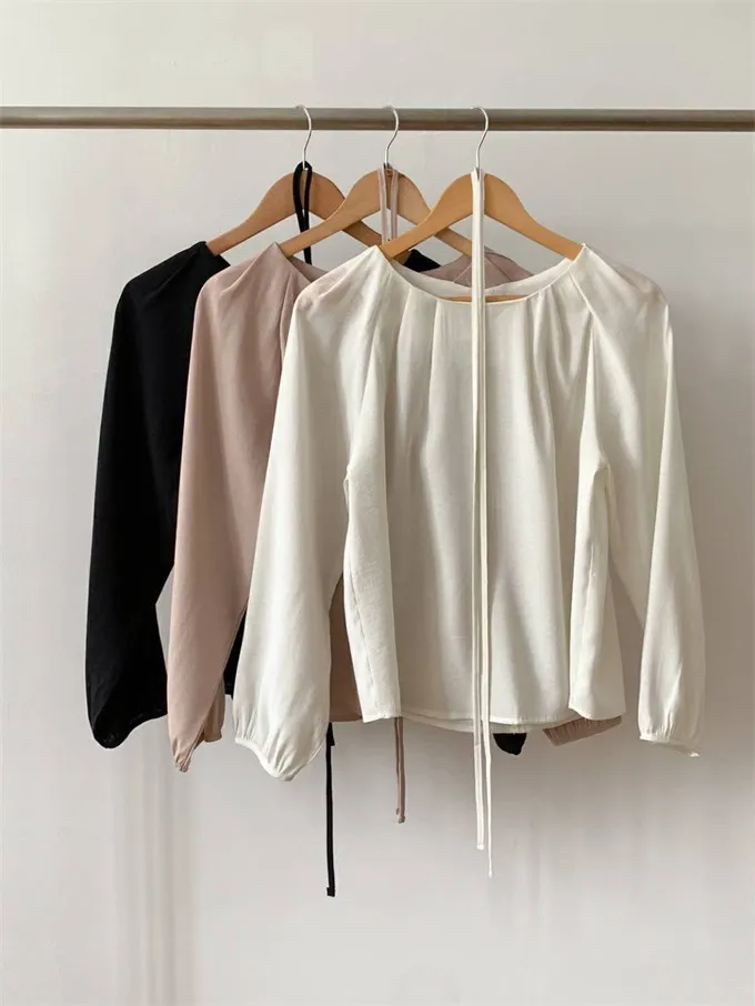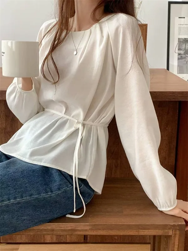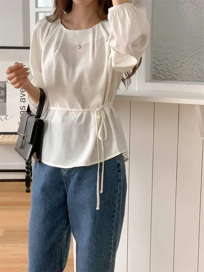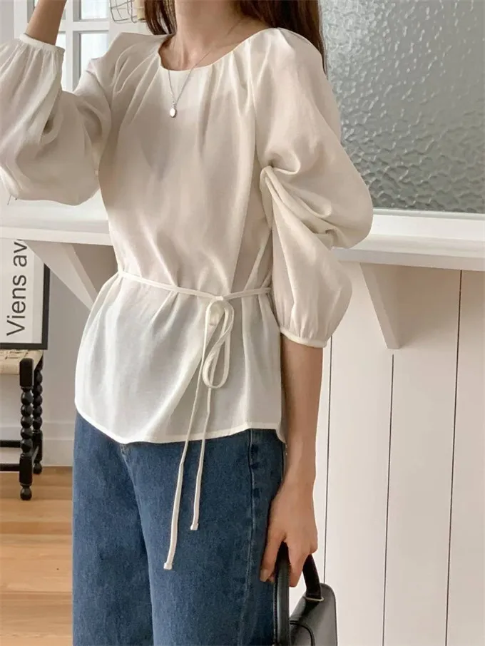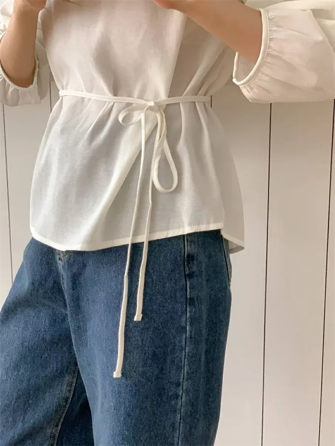 【必買】韓國 綁帶圓領雪紡上衣_G05