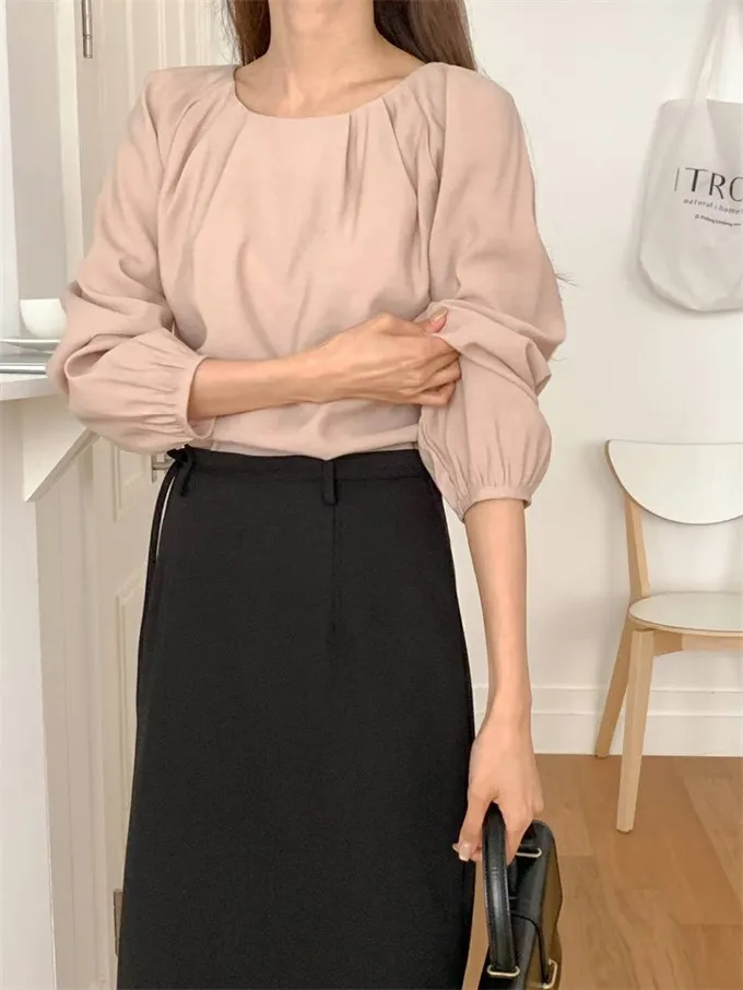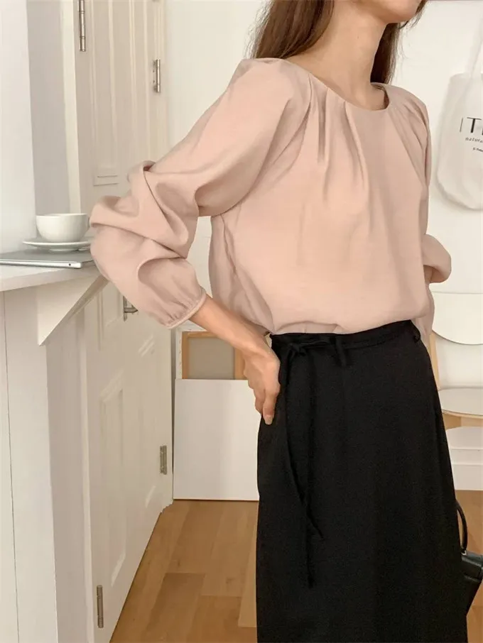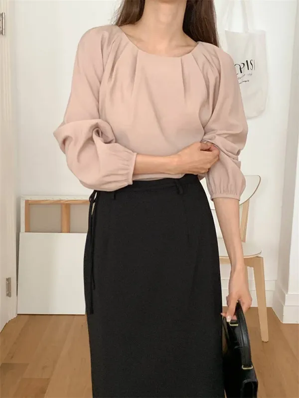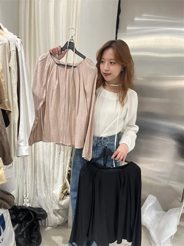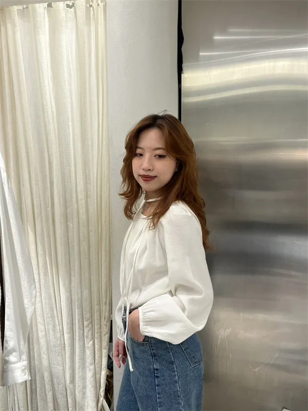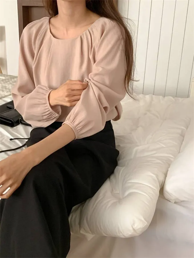 【必買】韓國 綁帶圓領雪紡上衣_G05