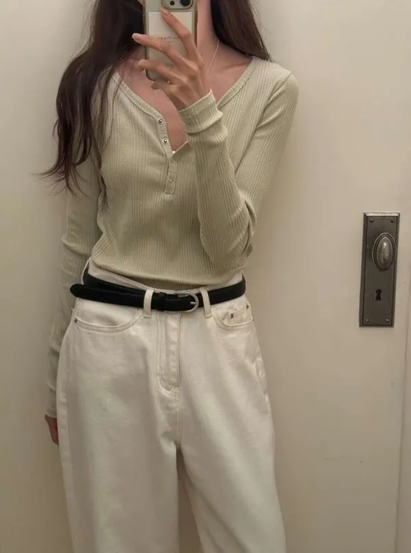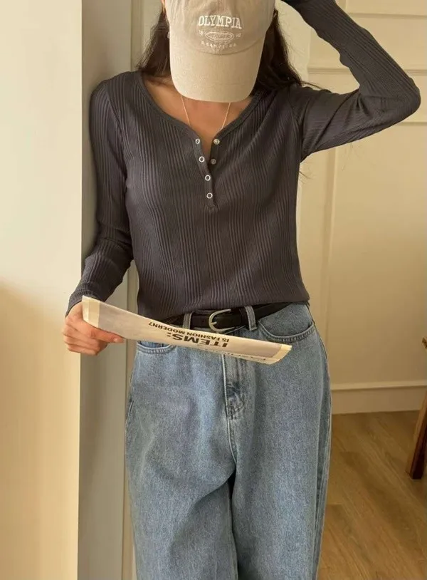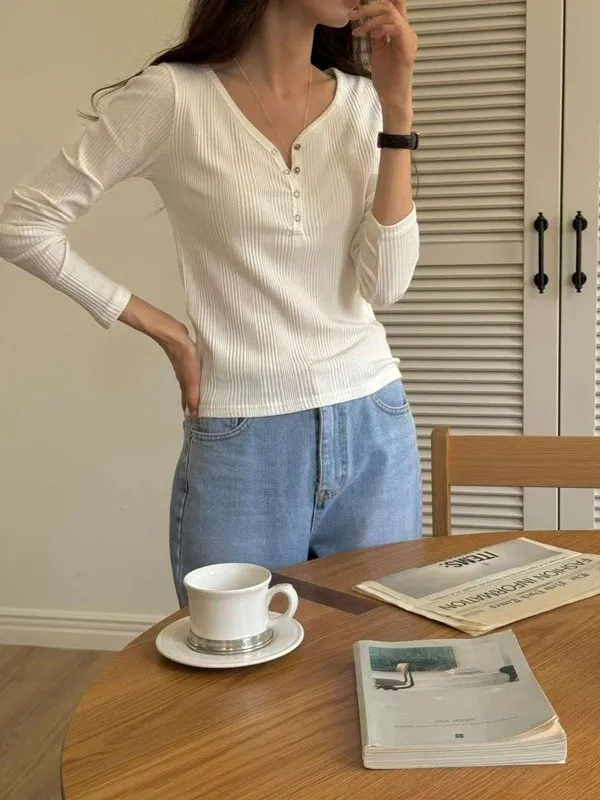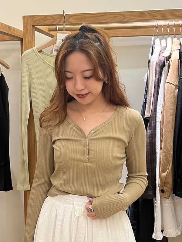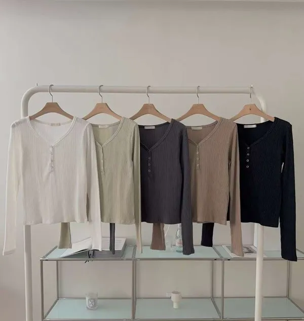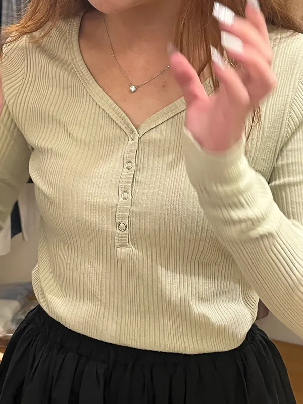 韓國 V領針織坑條排扣上衣(S-XL可穿)_H37