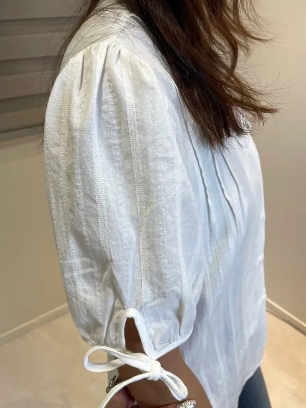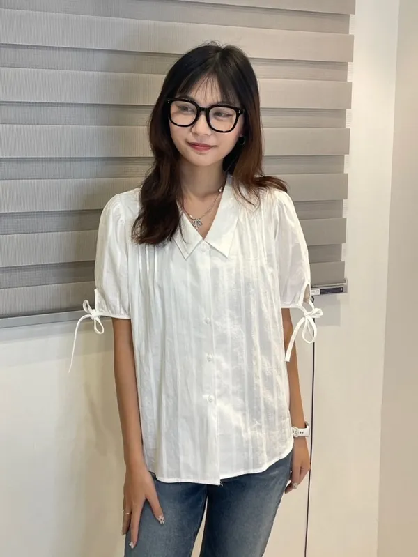 韓國 褶皺泡泡袖襯衫(L可穿)_H56