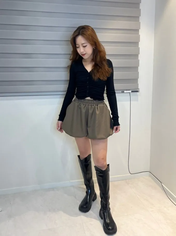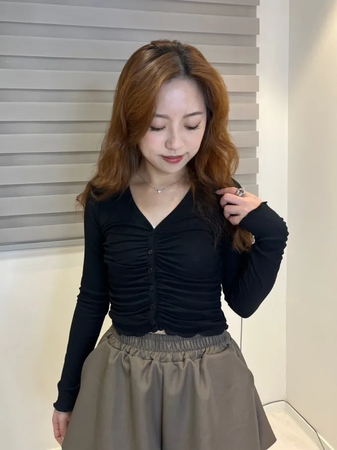 韓國 微辣顯瘦抓皺上衣_H57