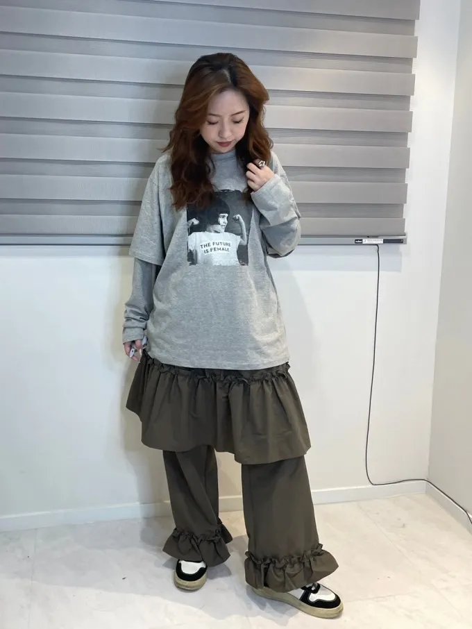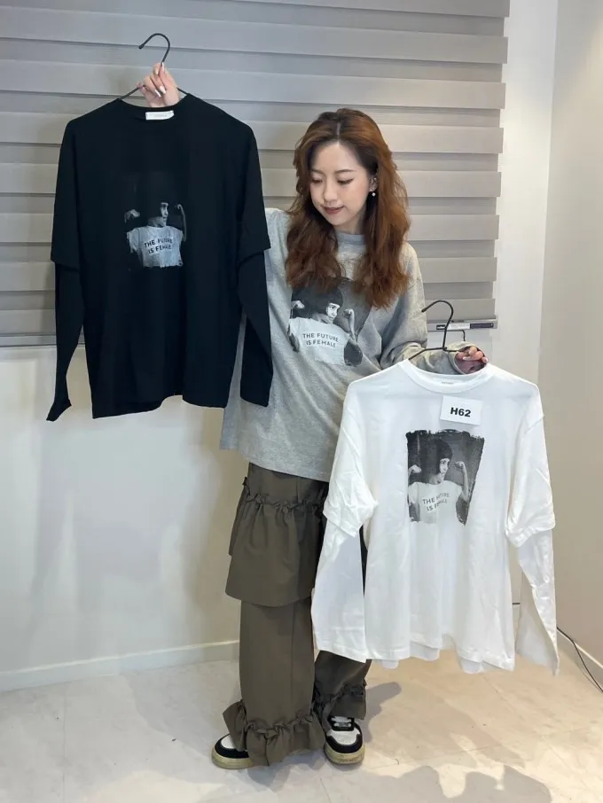 韓國 韓國 個性妹妹拼接袖tee_H62