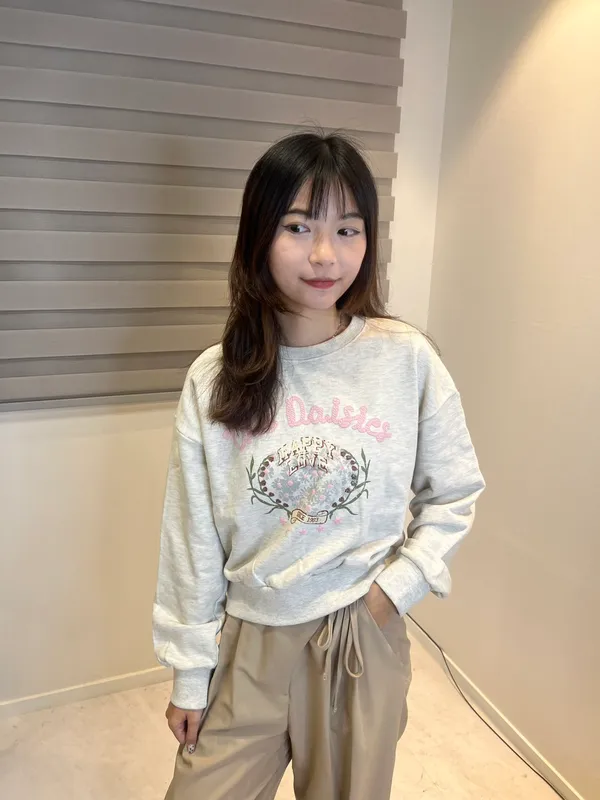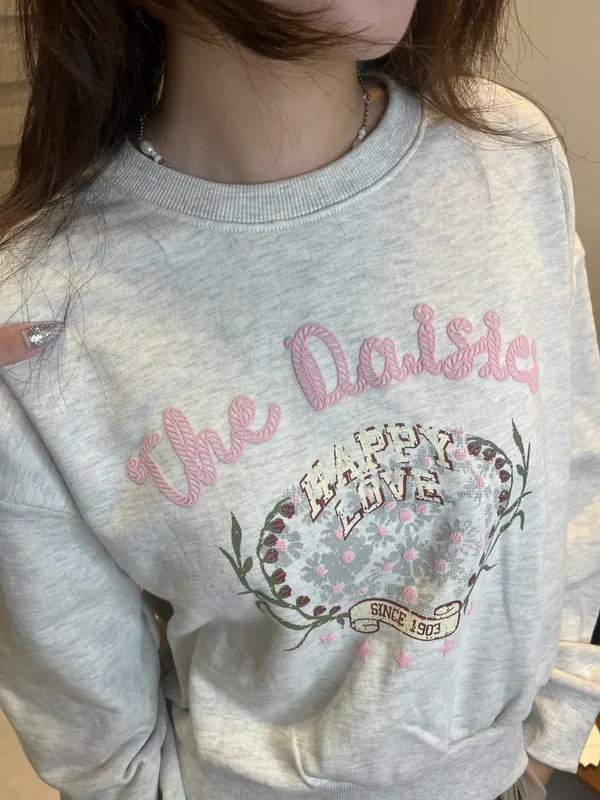 韓國 甜美花卉字母印花休閒衛衣_H85