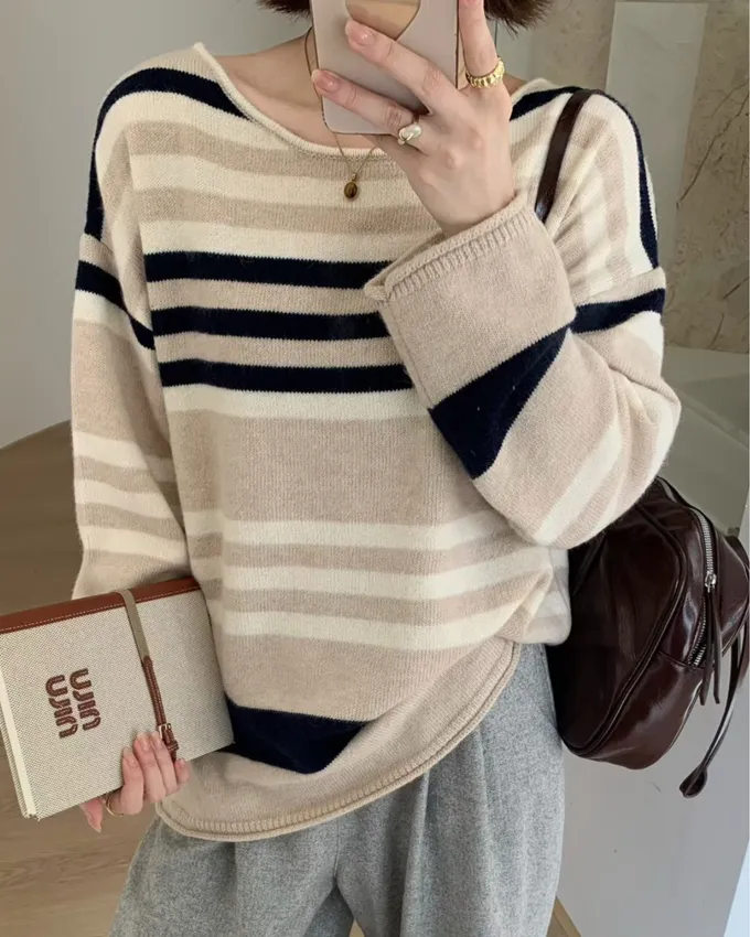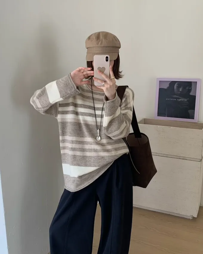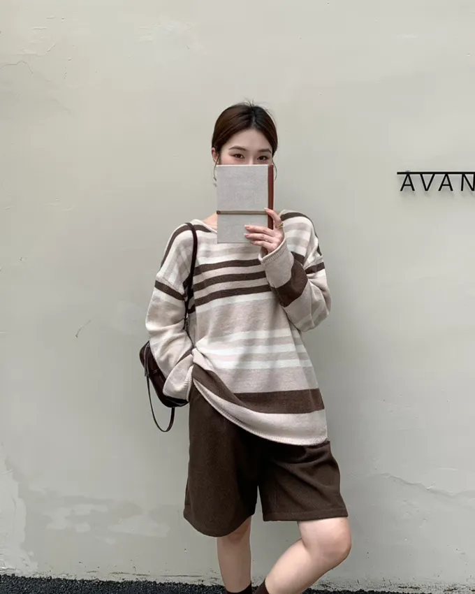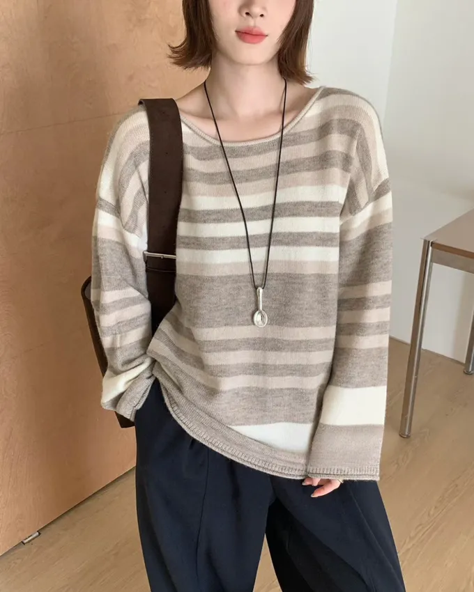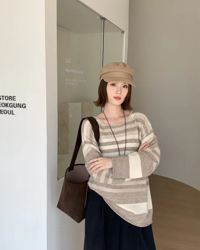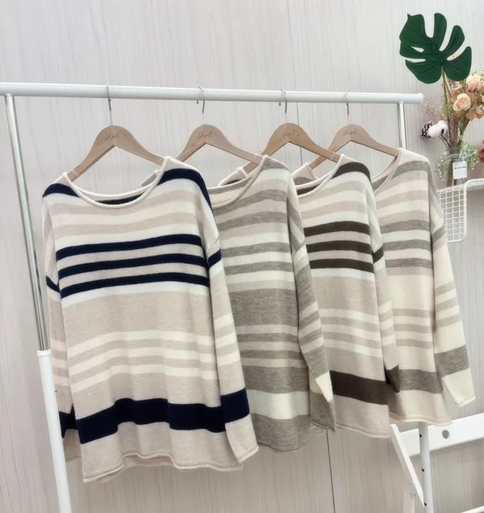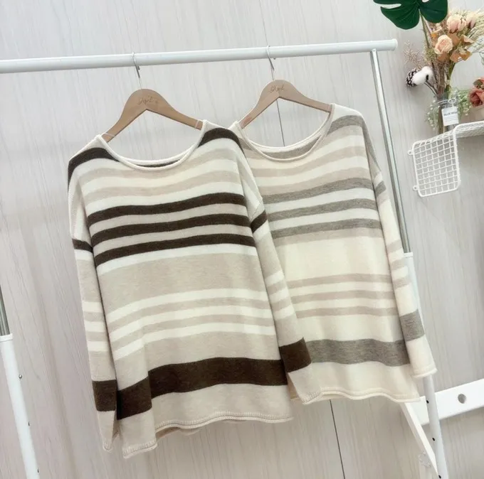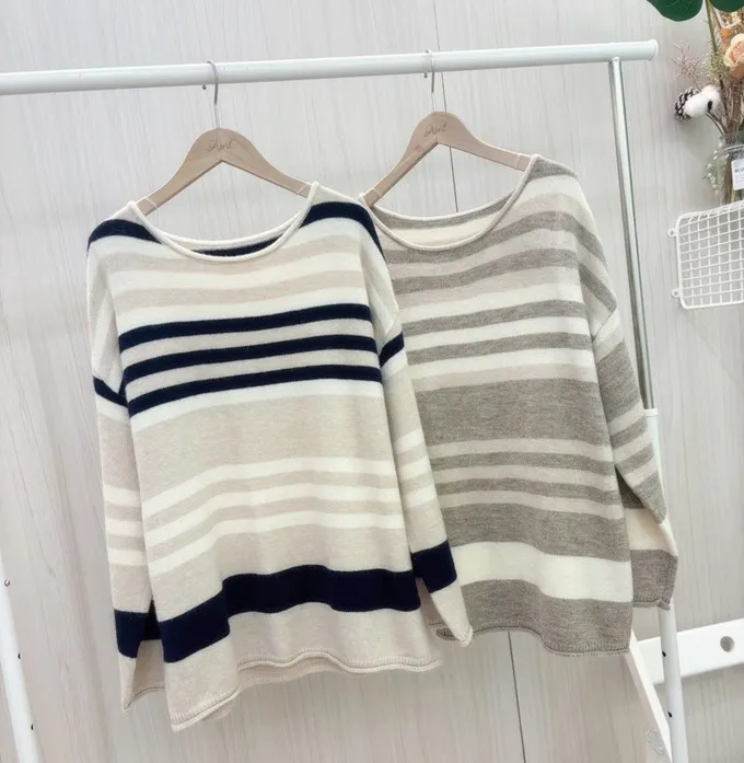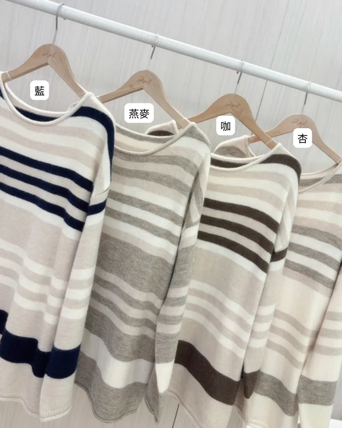 簡約橫條配色針織上衣_C07