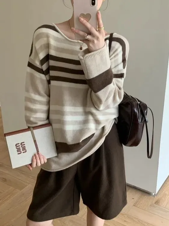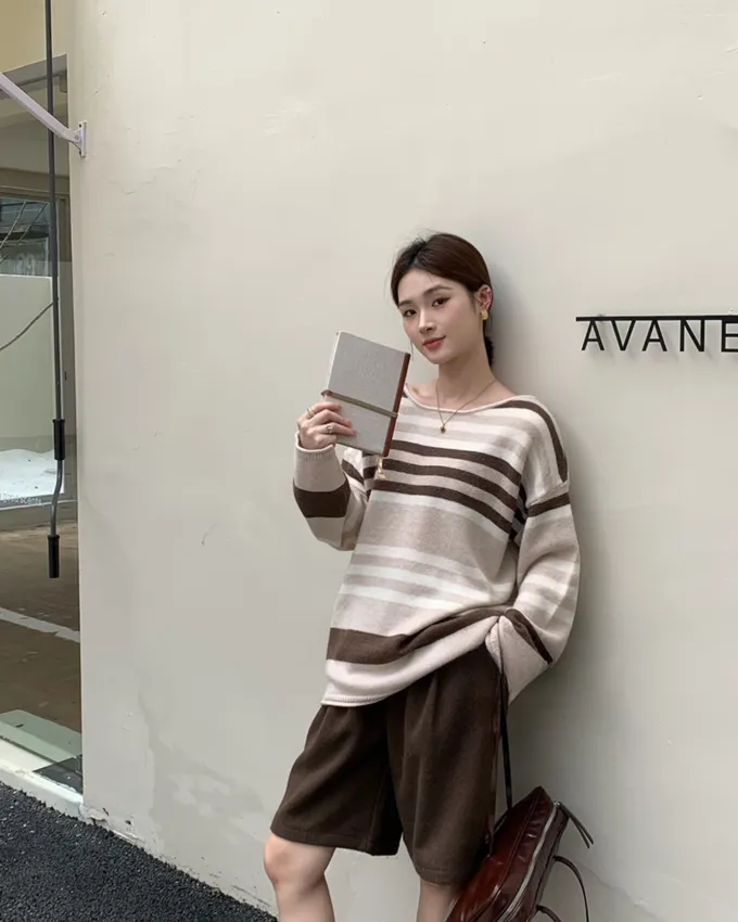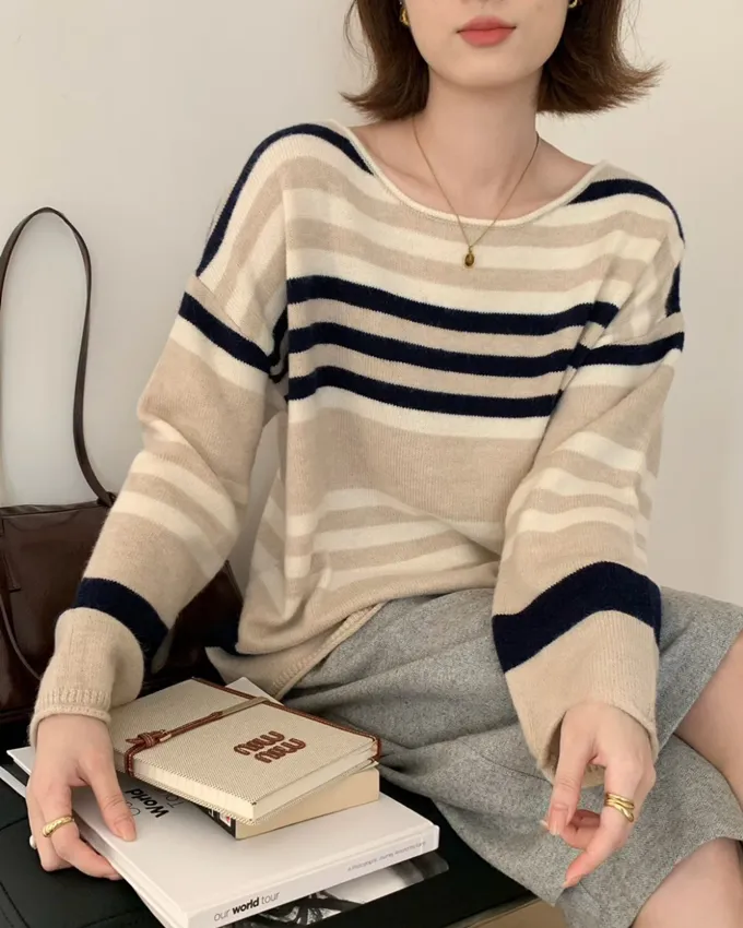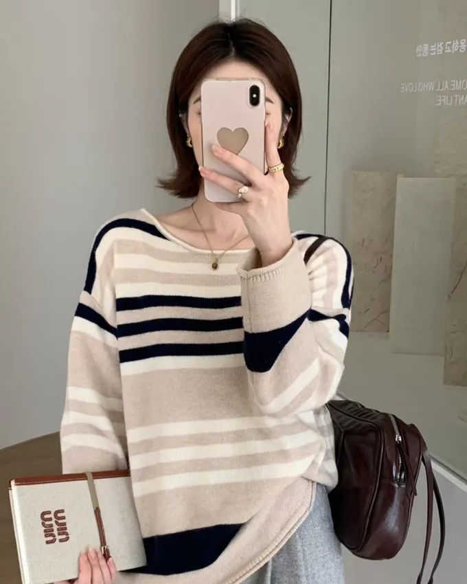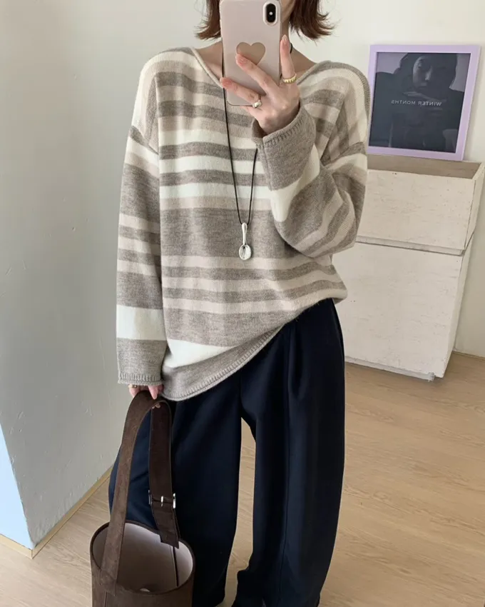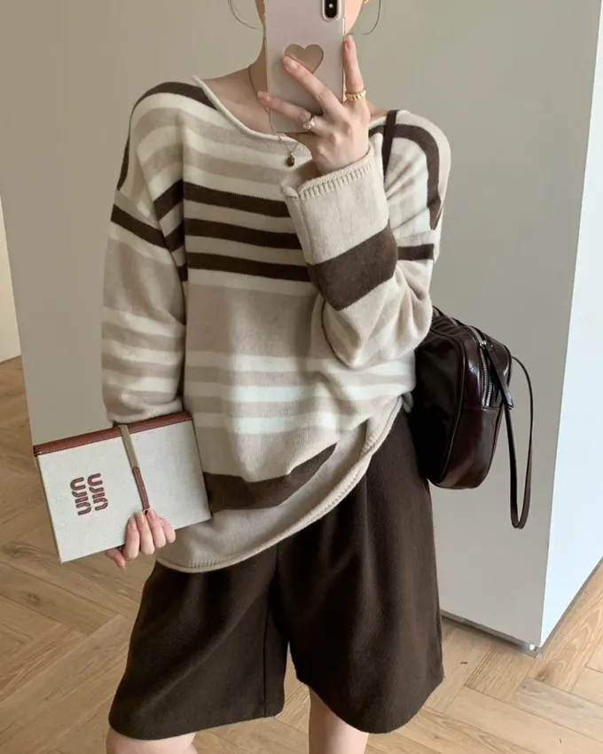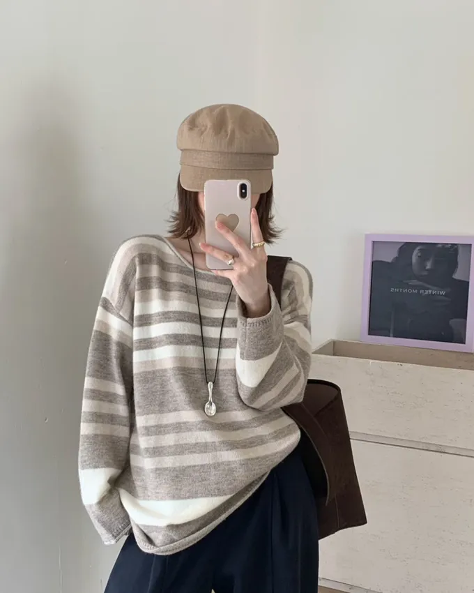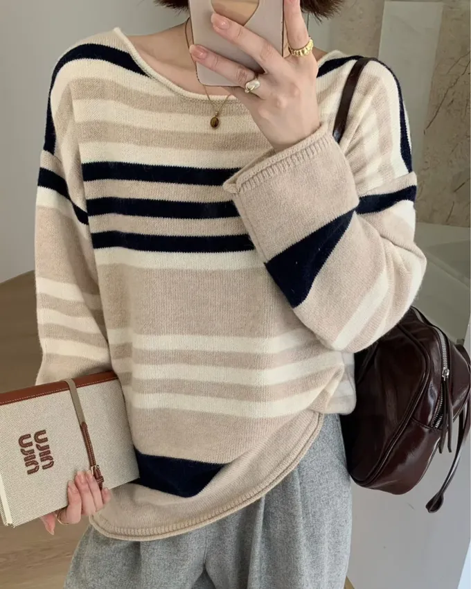 簡約橫條配色針織上衣_C07