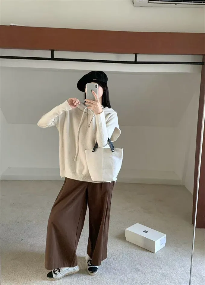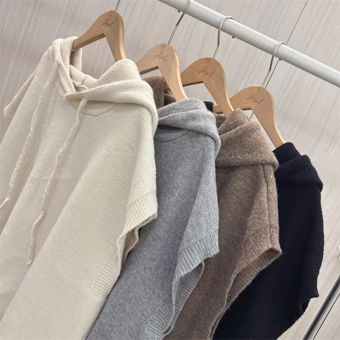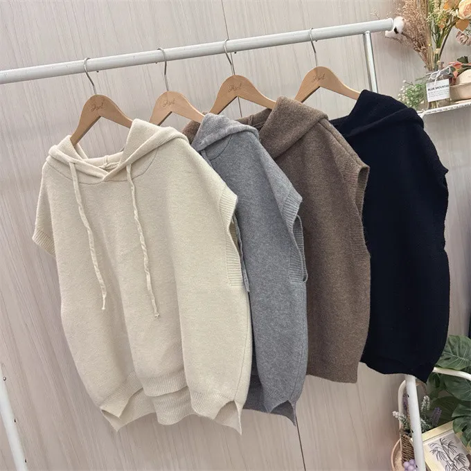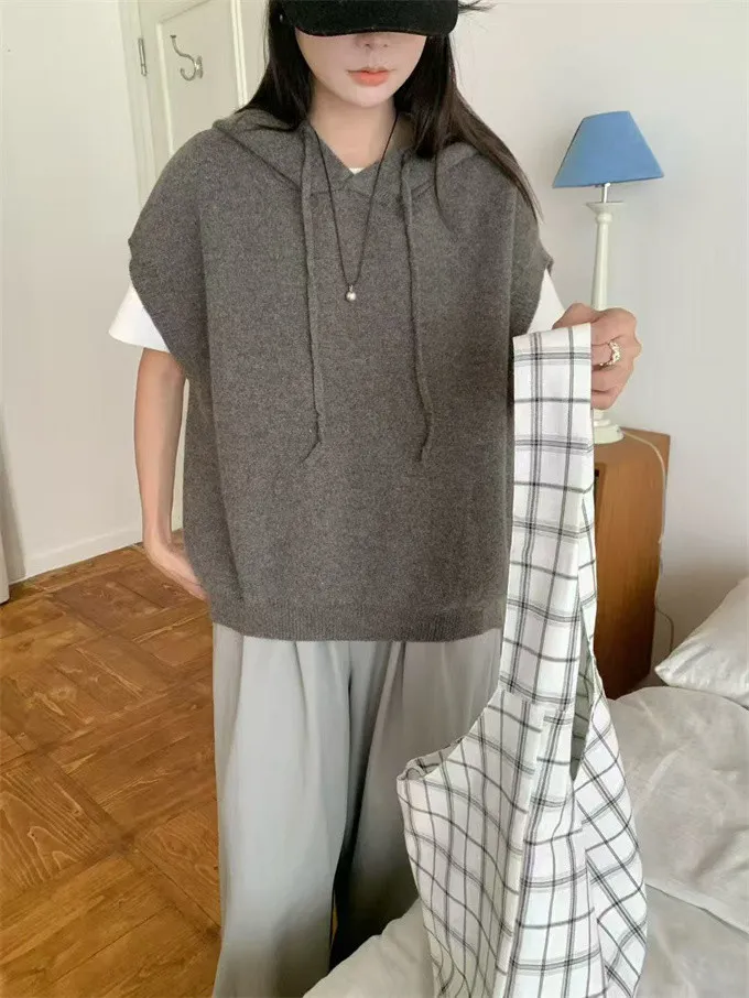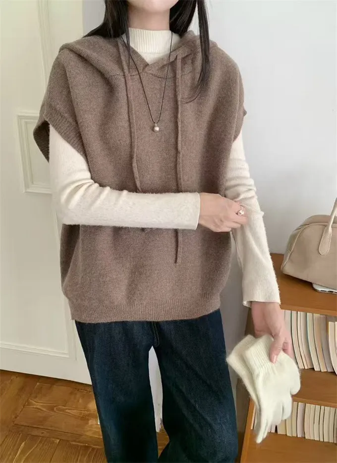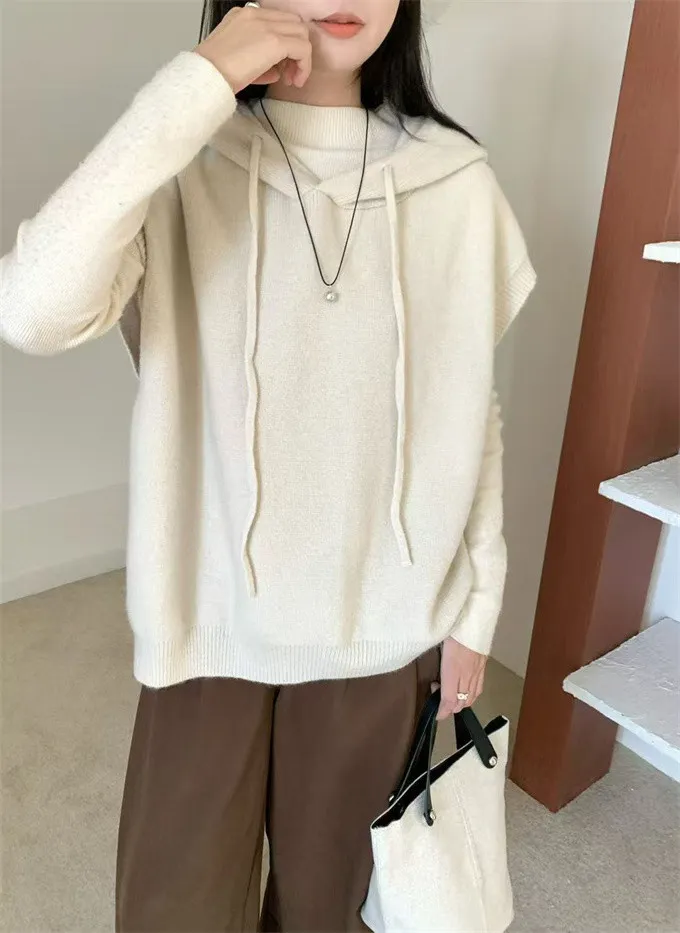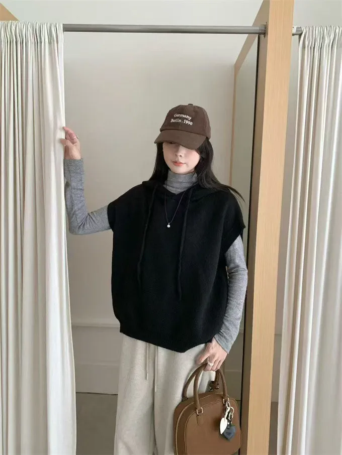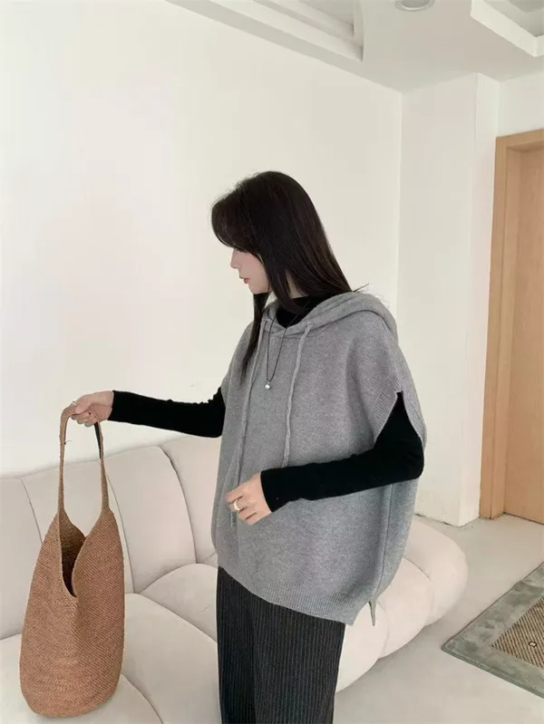 文青感寬鬆針織連帽背心_F07