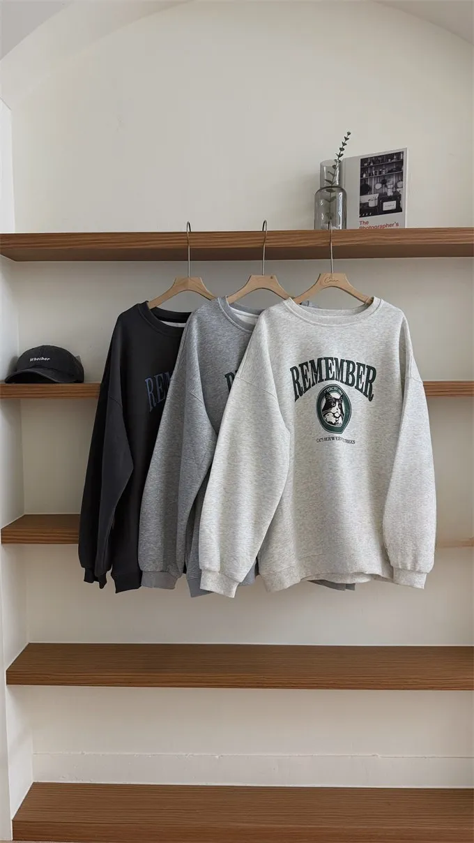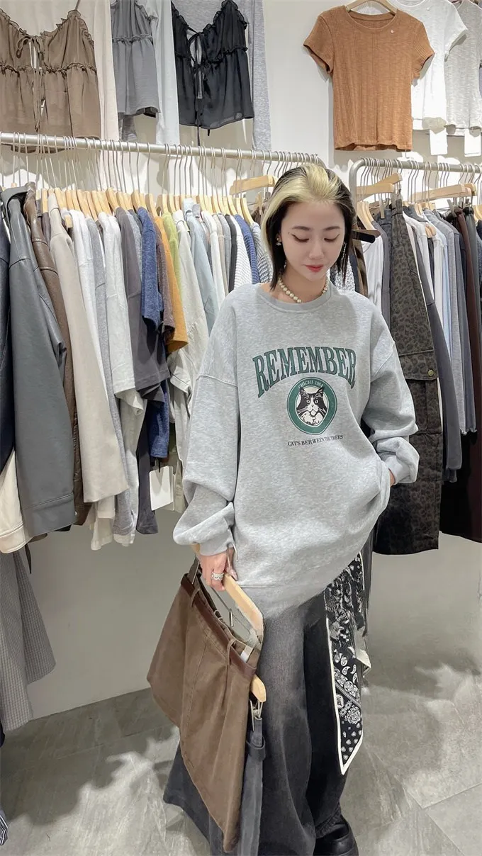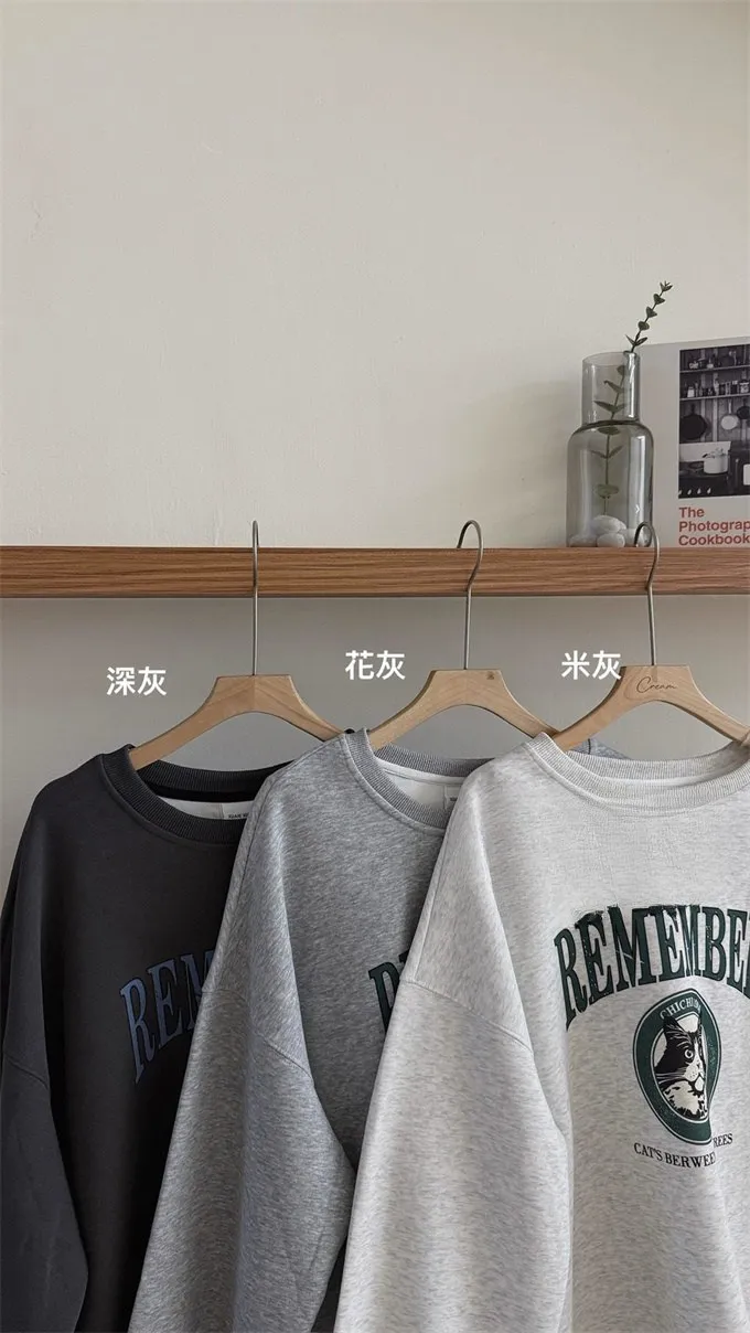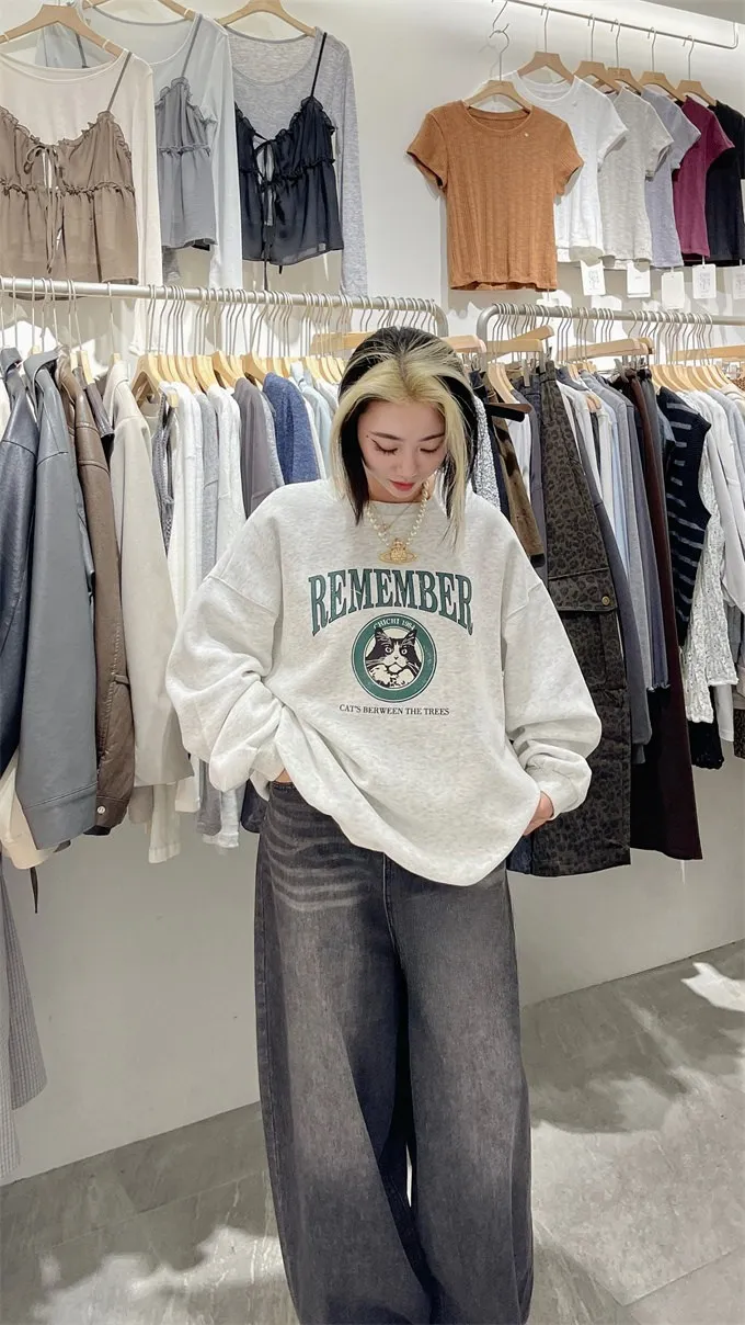 小黑貓韓版落肩大學T_B17