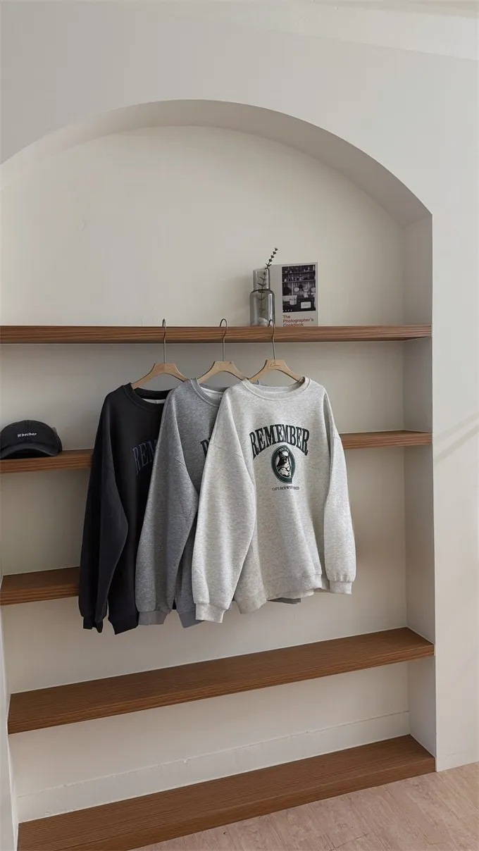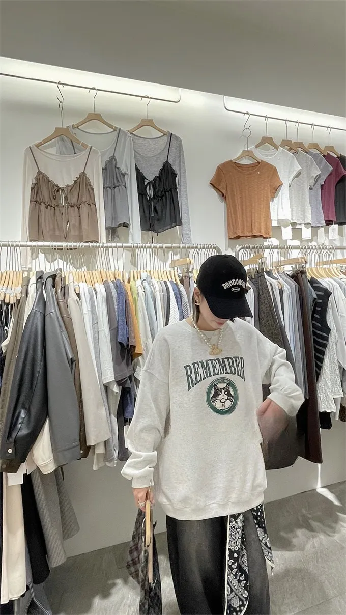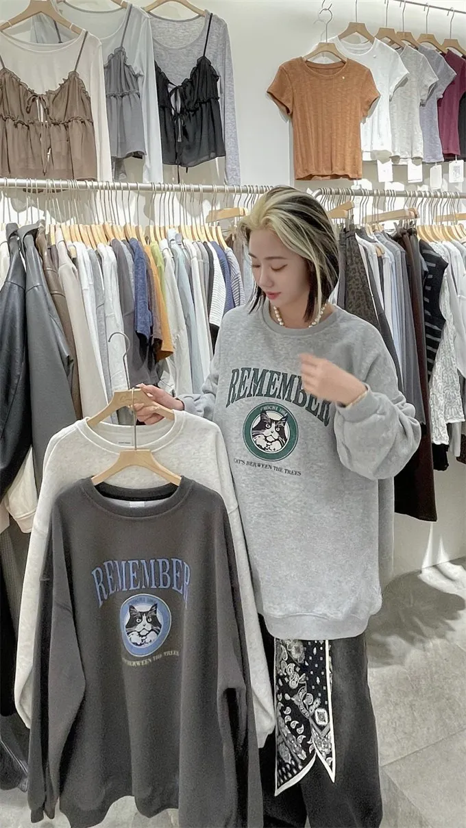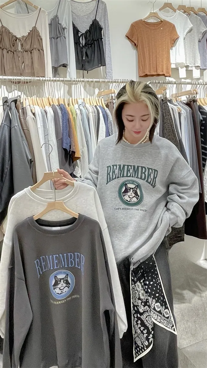 小黑貓韓版落肩大學T_B17