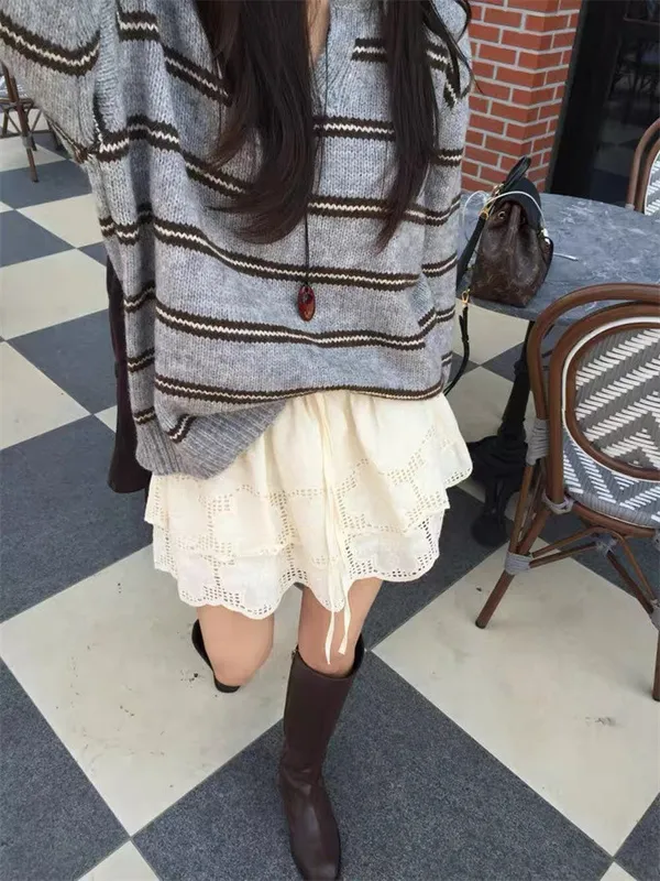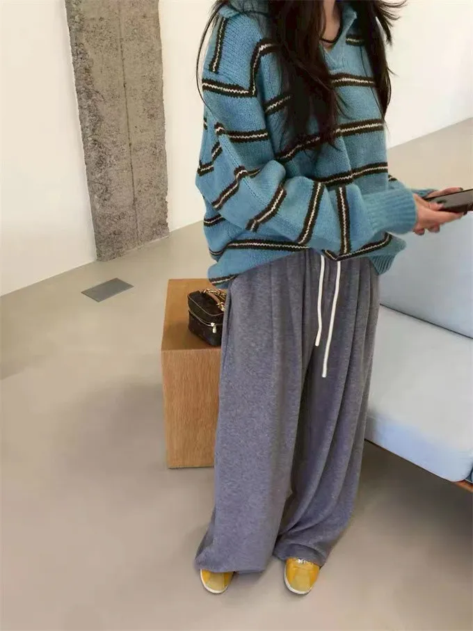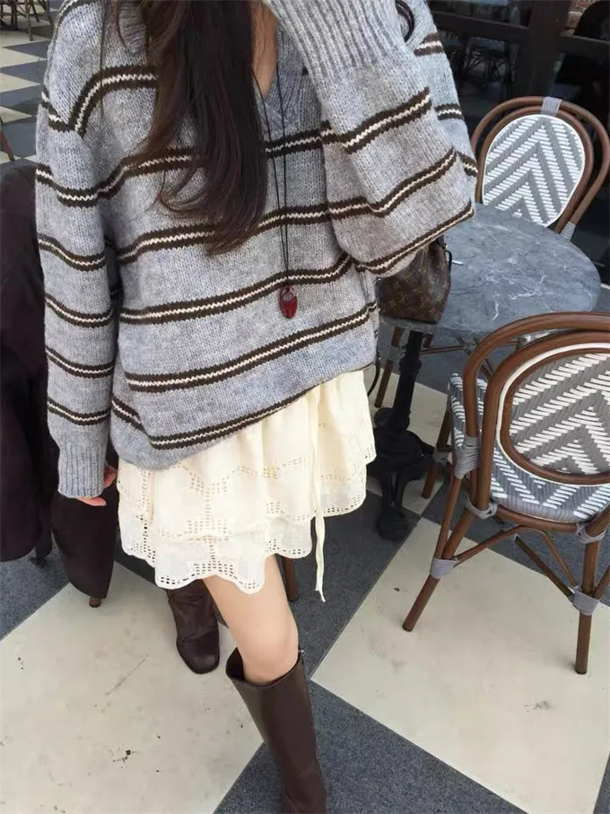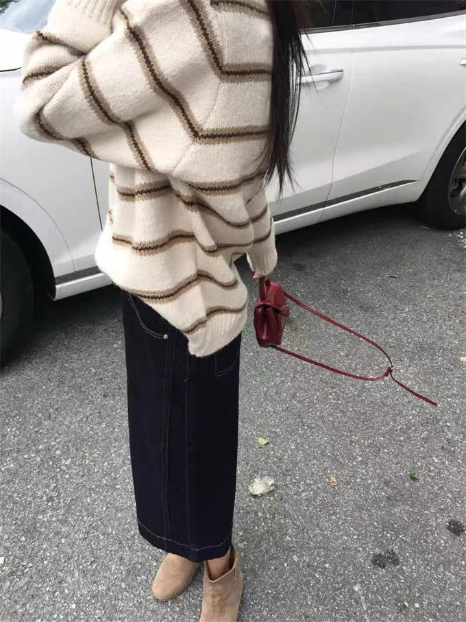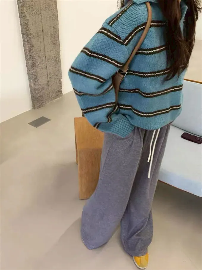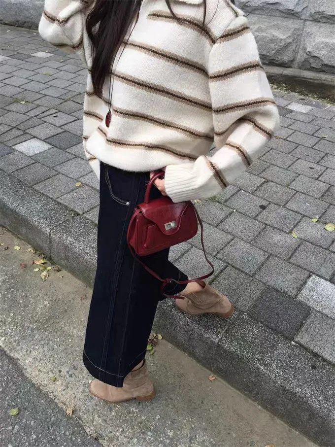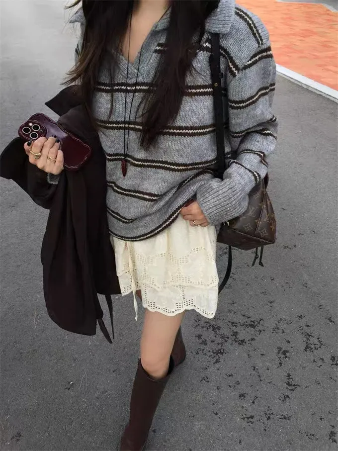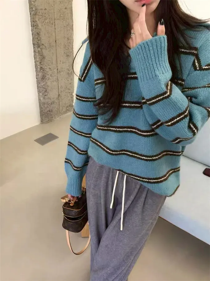 韓系復古開領線條針織上衣_B12