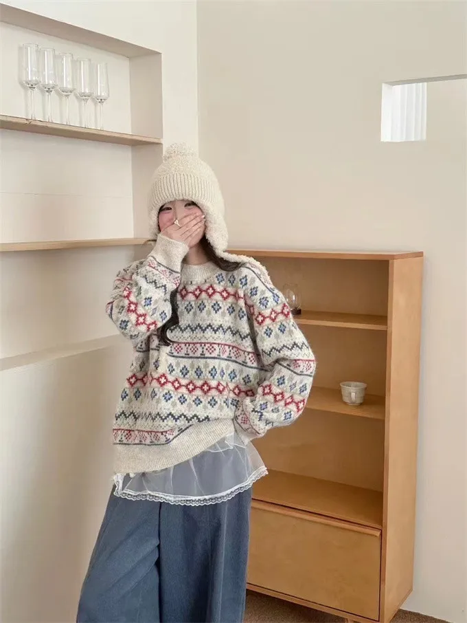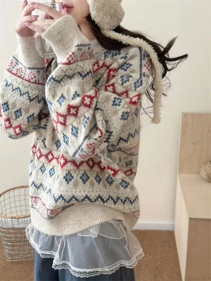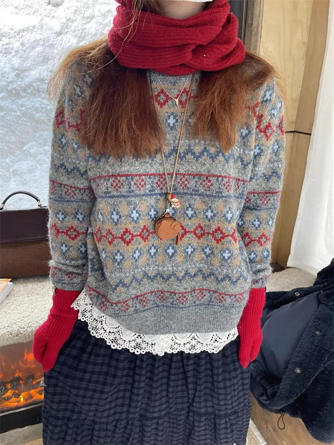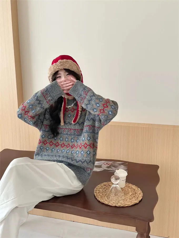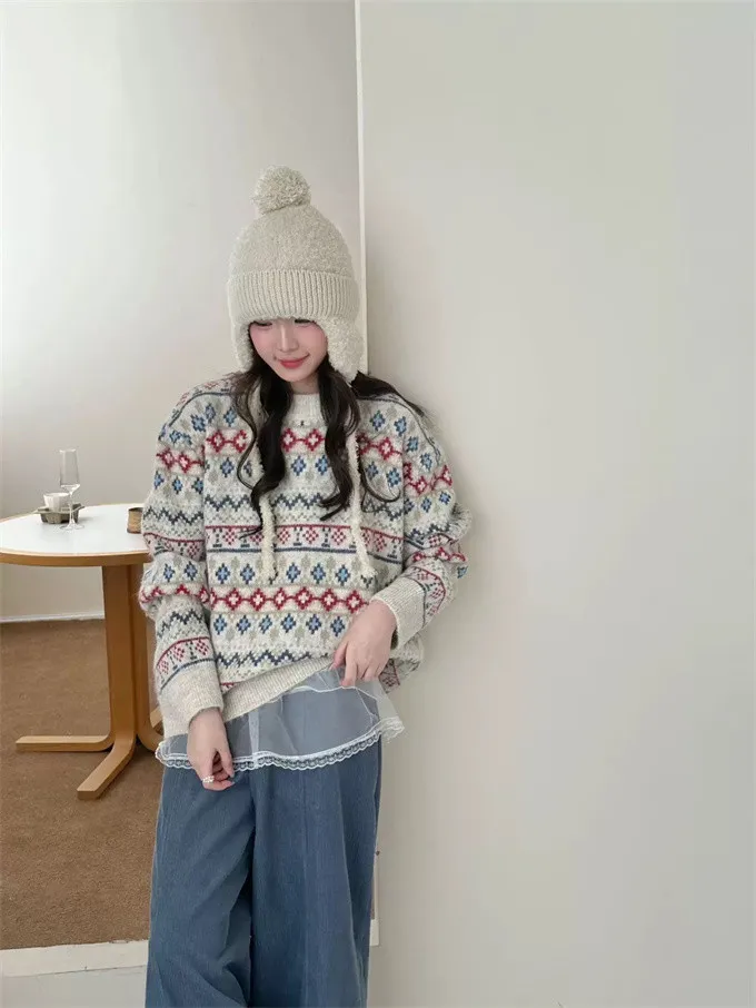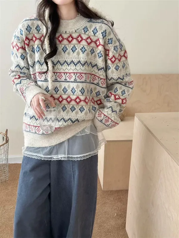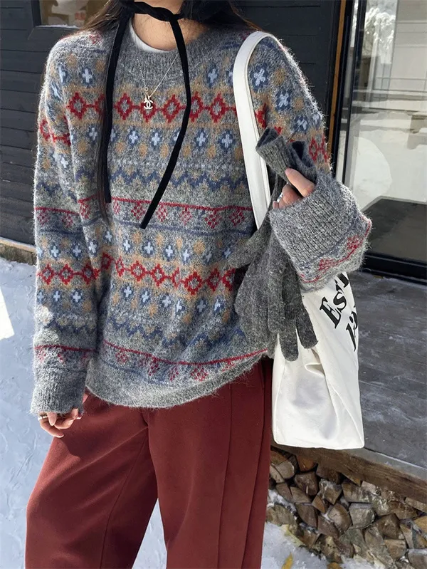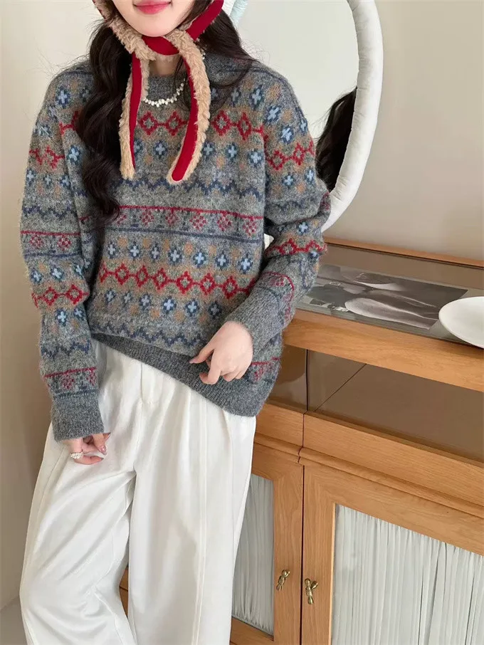 北歐小鎮復古花毛衣_D05