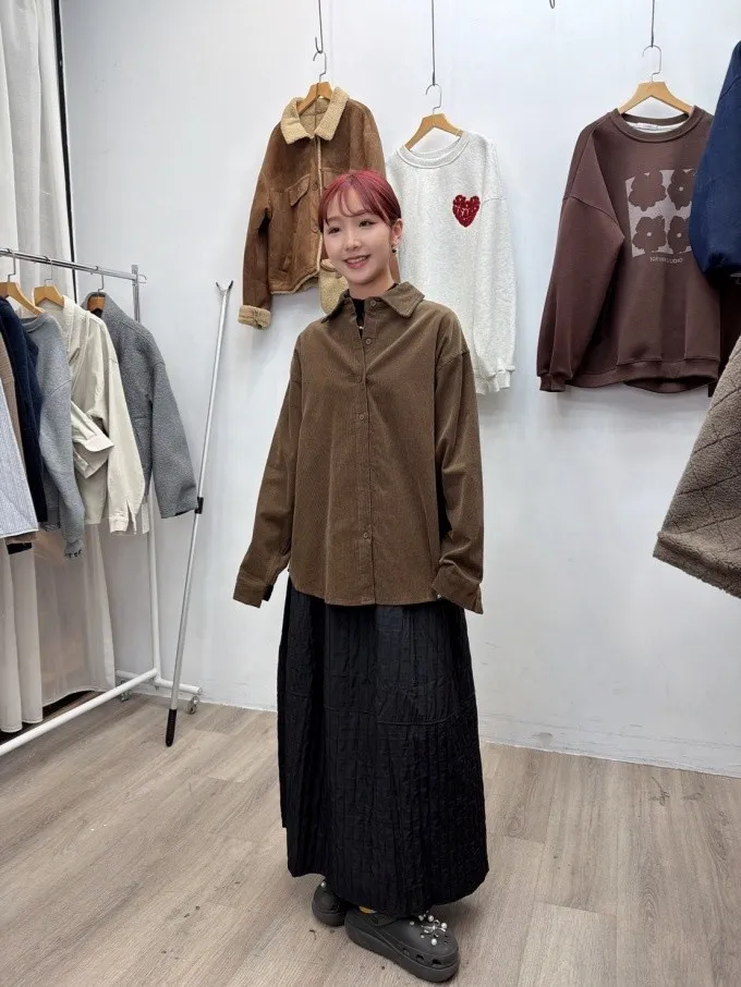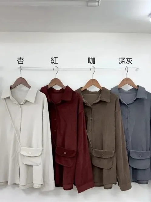 【現+預】附包包坑條毛呢襯衫_F09
