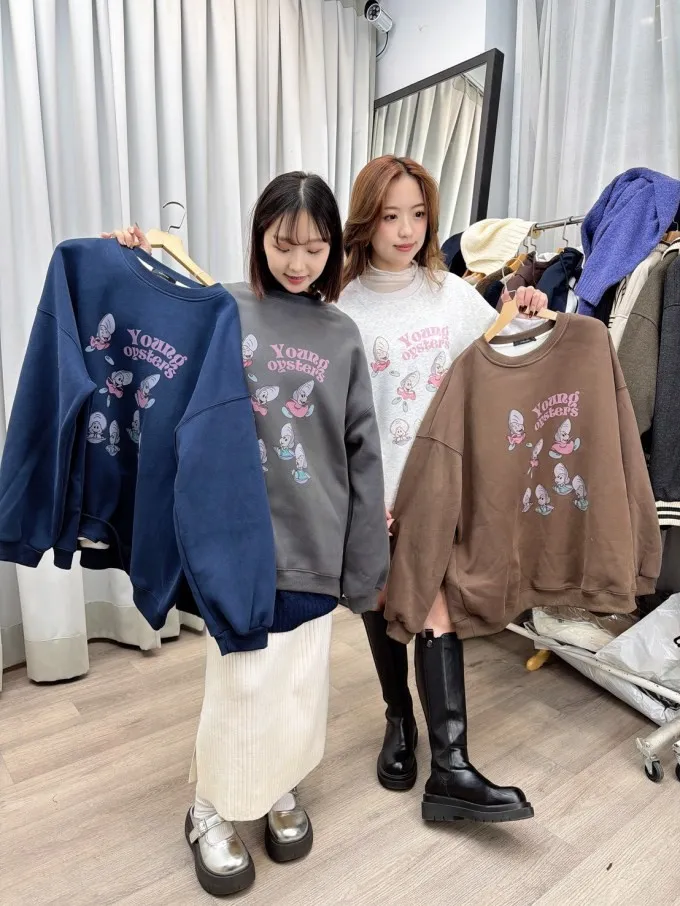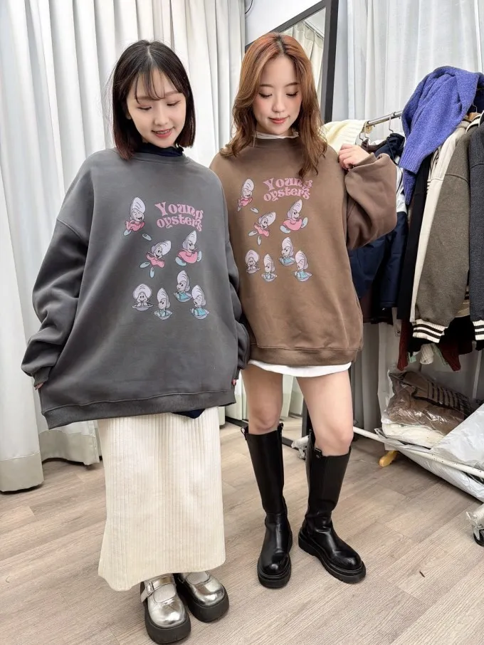 牡蠣寶寶加絨大版大學tee_A11