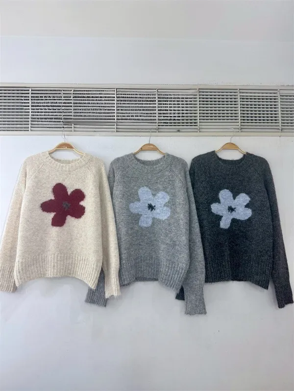 花花圓領針織衣_F07