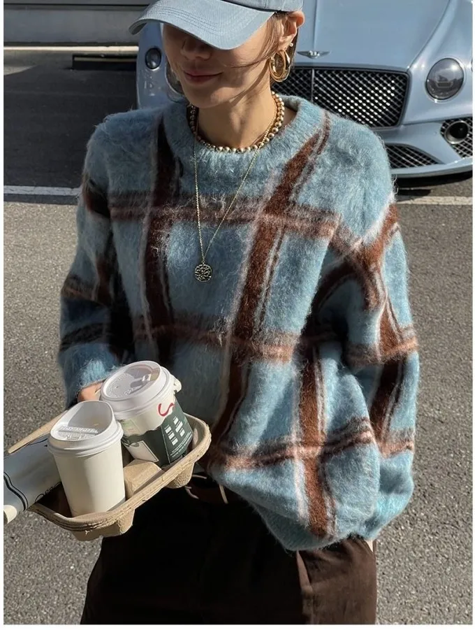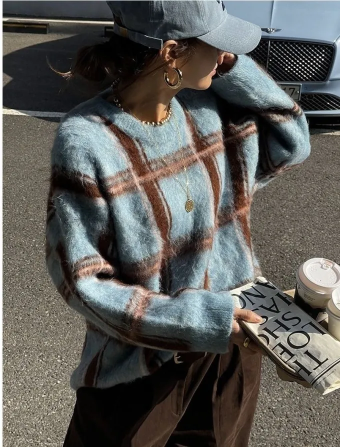 柔和的冰川藍配上焦糖格紋,襯膚色且富有高級層次感