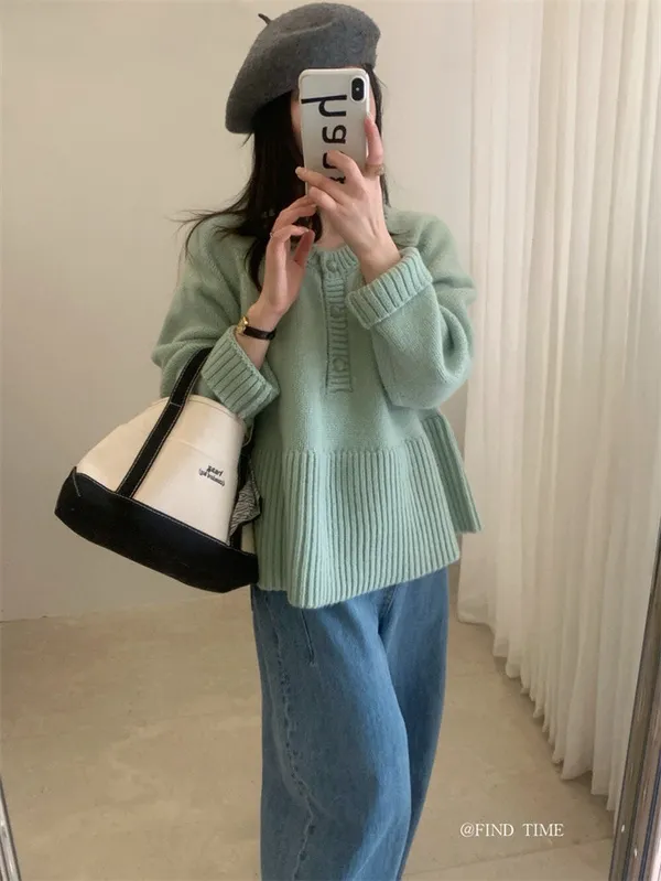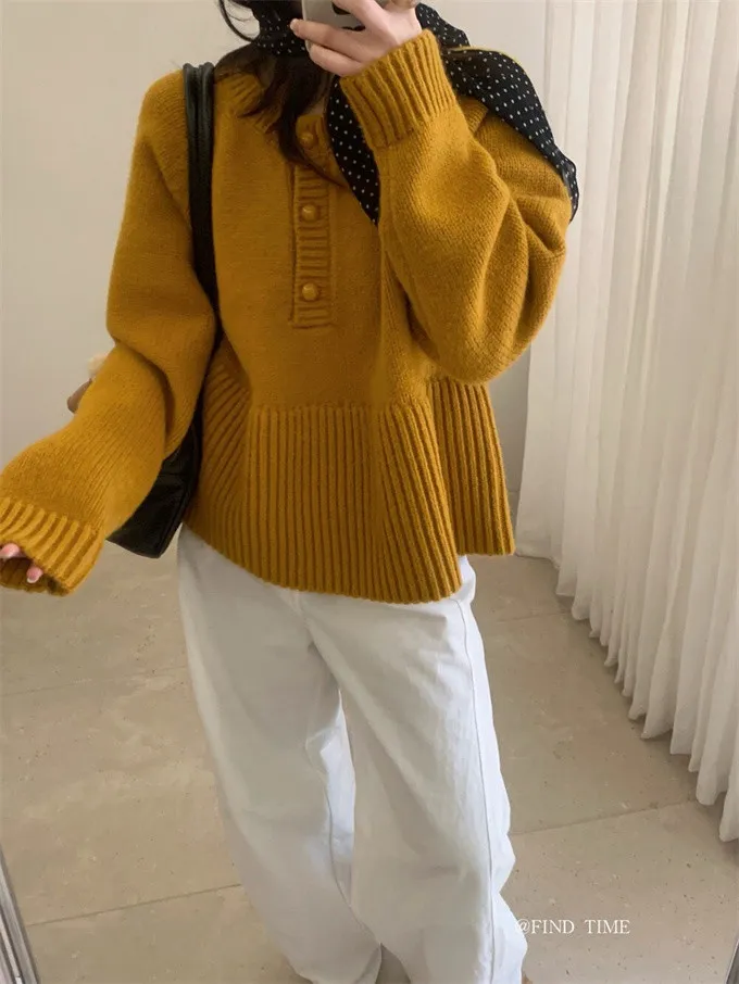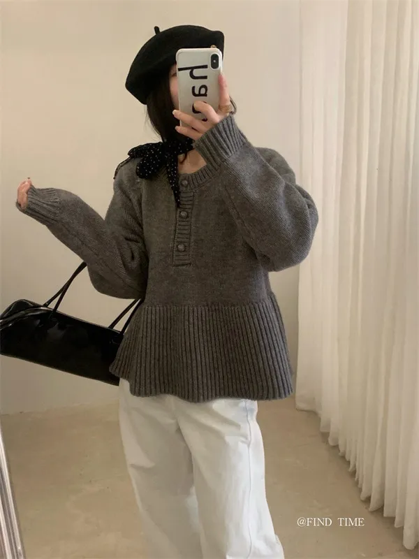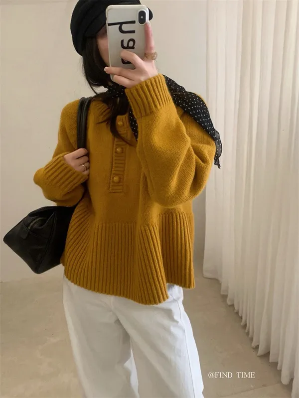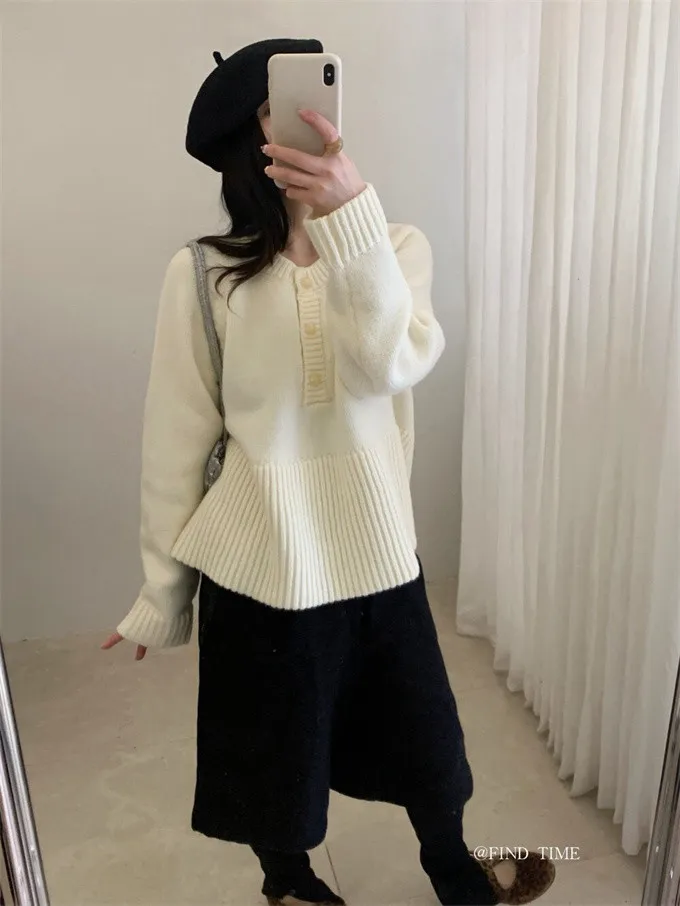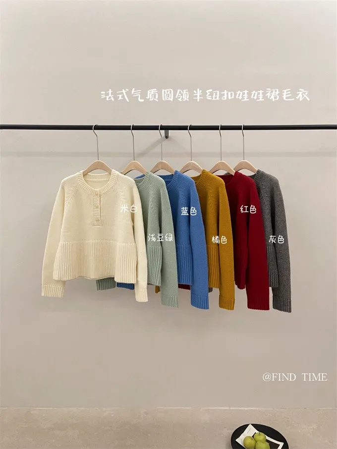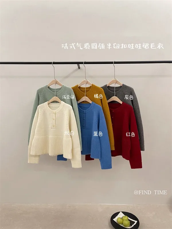 娃娃裙擺圓領半鈕扣針織毛衣|商品介紹
