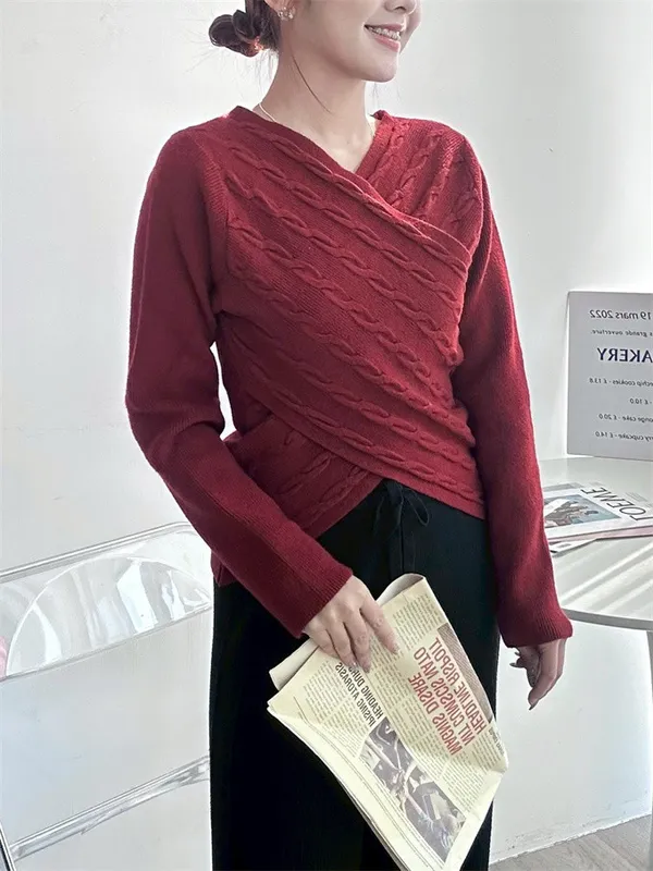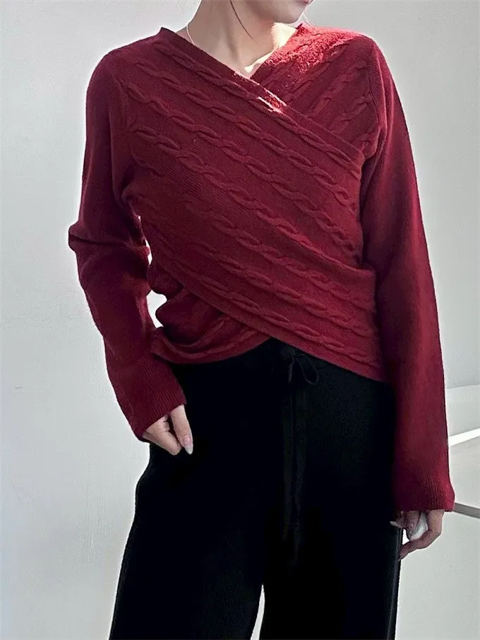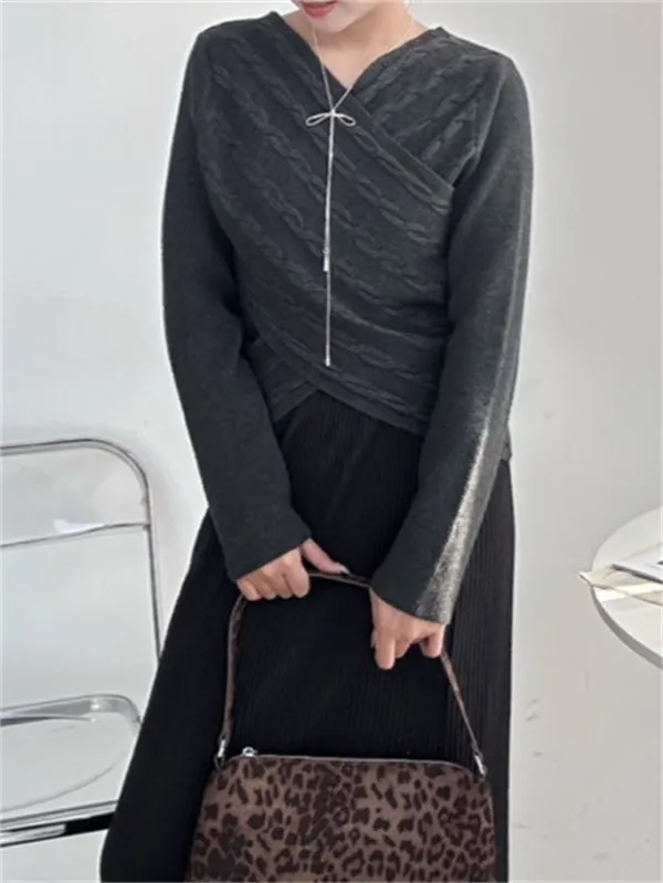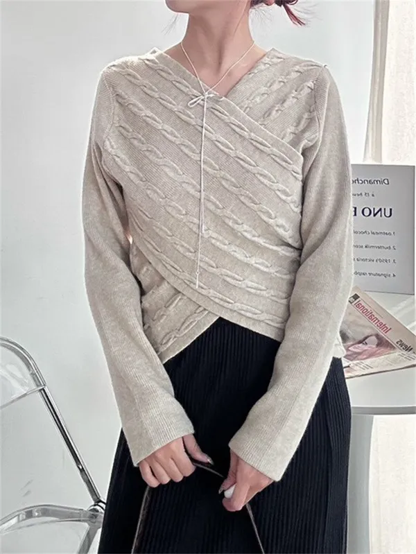【現貨】針織交叉V領上衣_A01