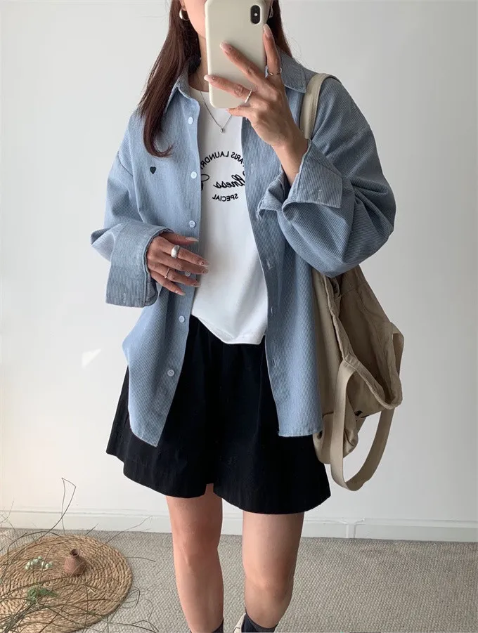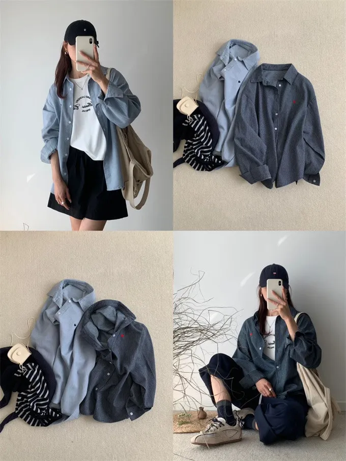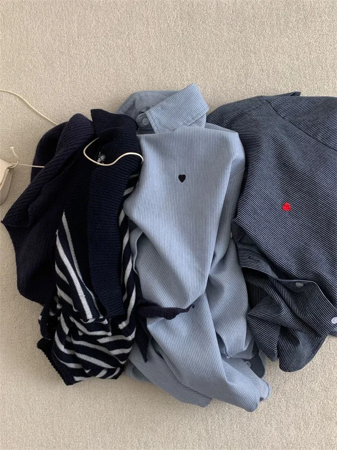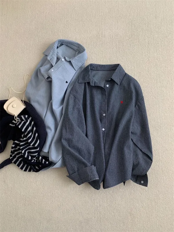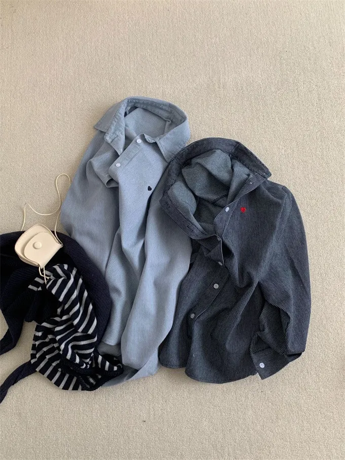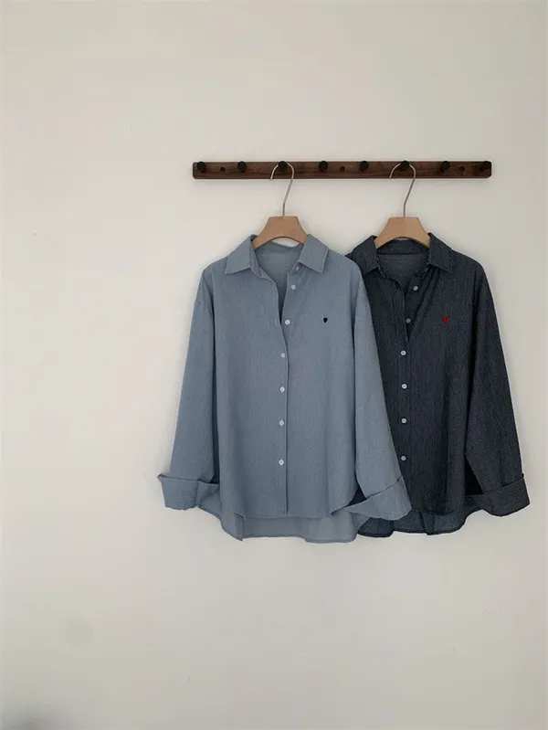 愛心刺繡條紋牛仔襯衫_G12