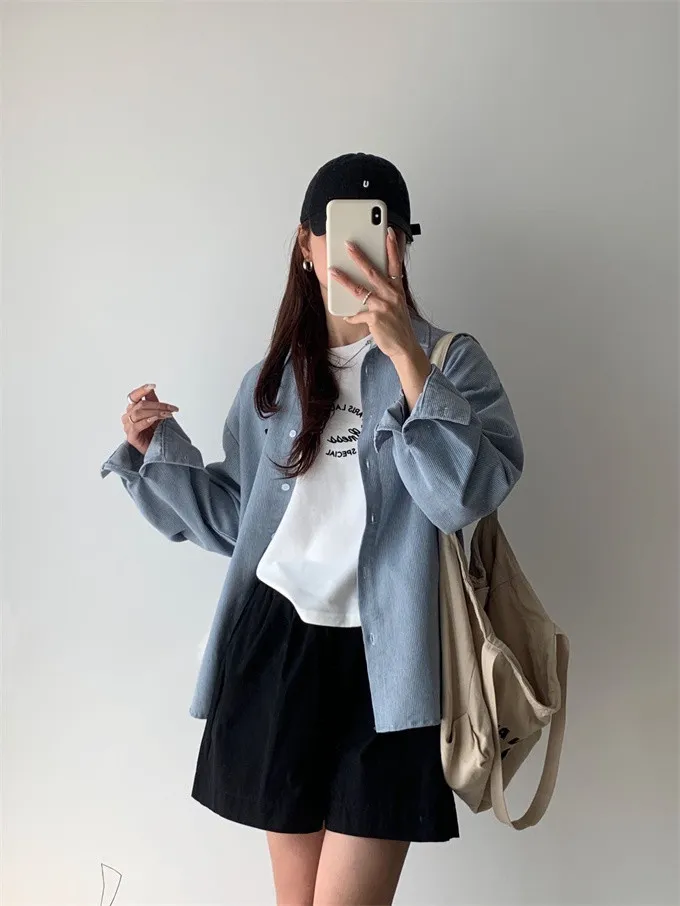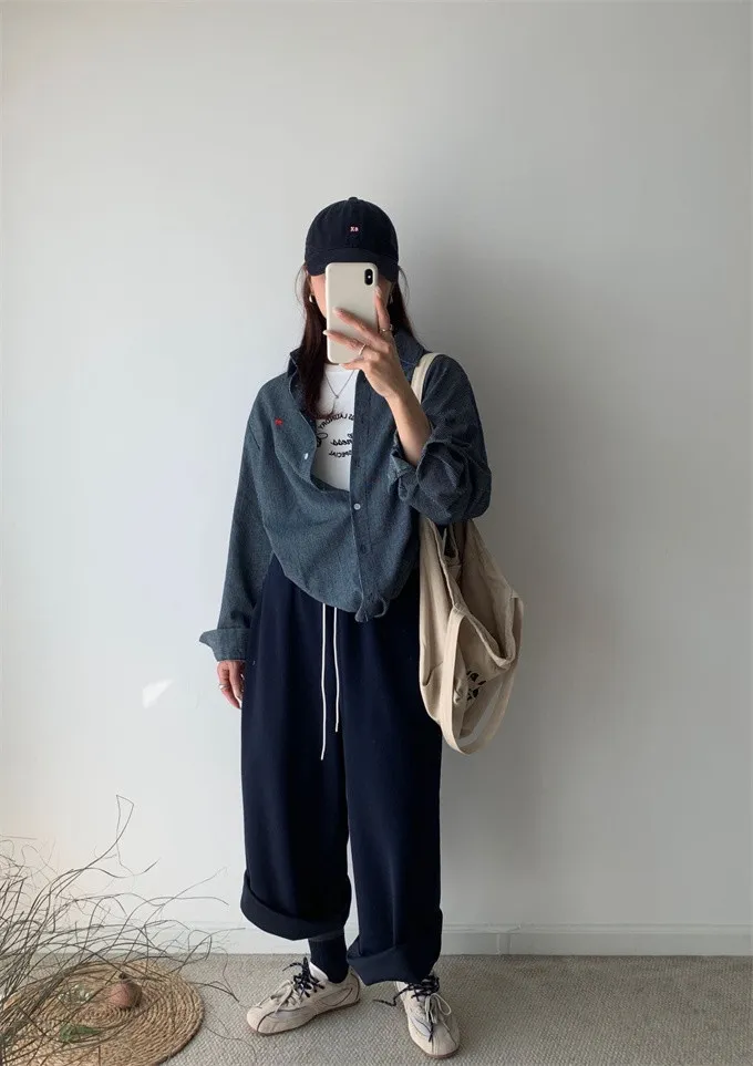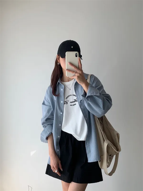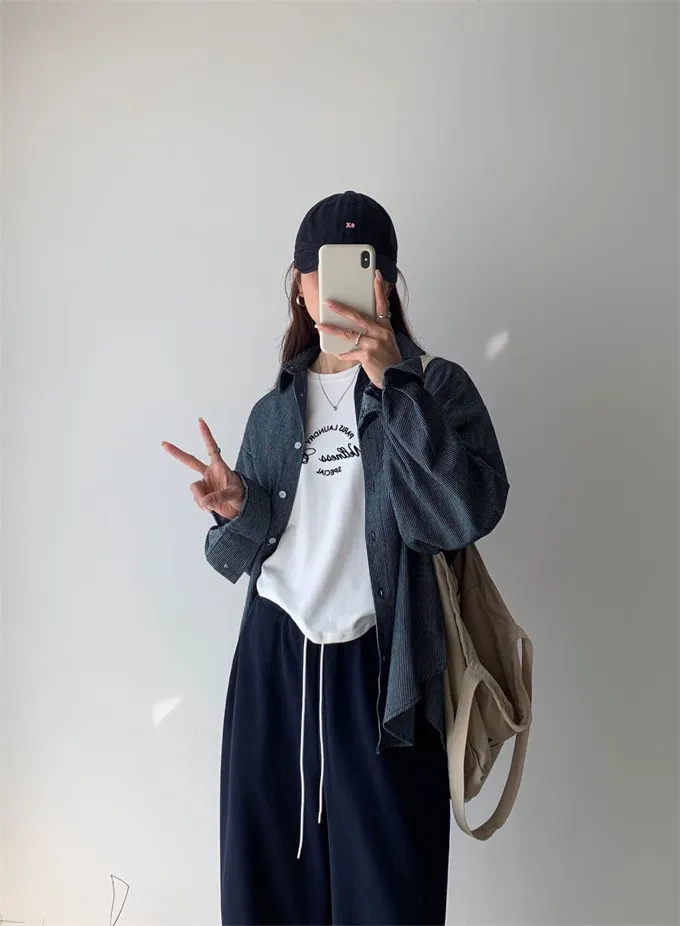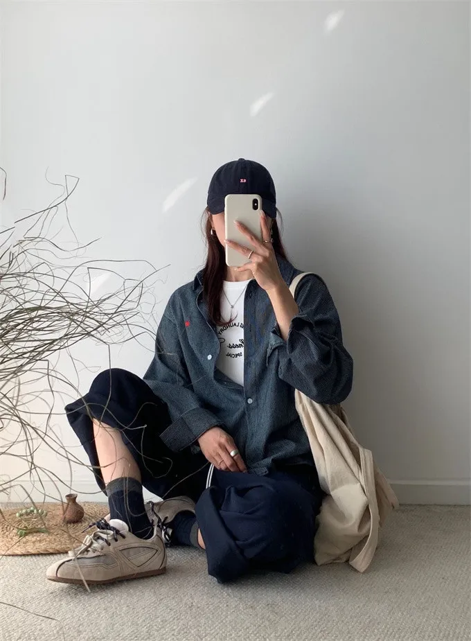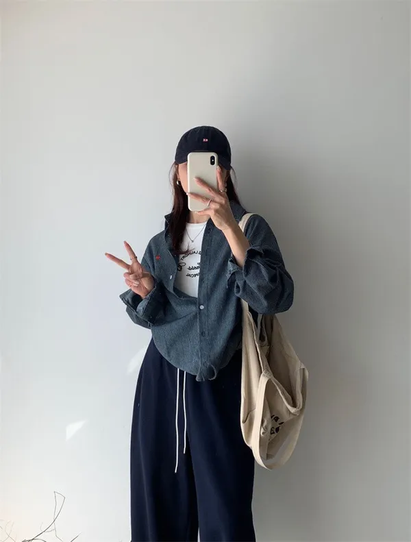 愛心刺繡條紋牛仔襯衫_G12