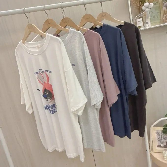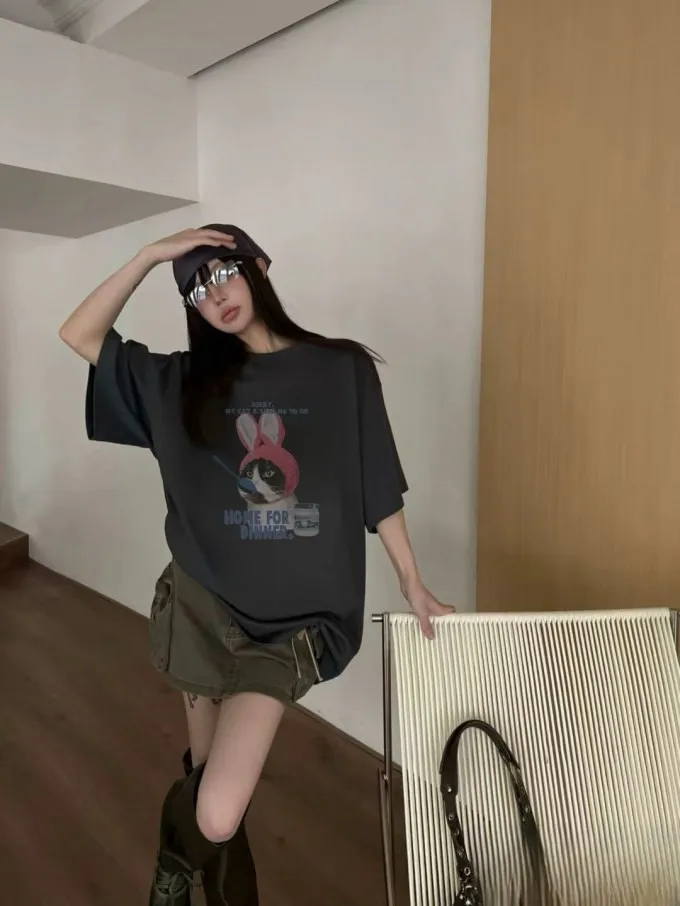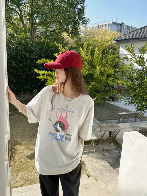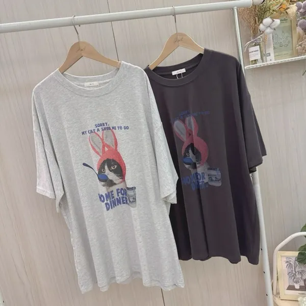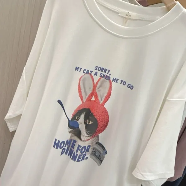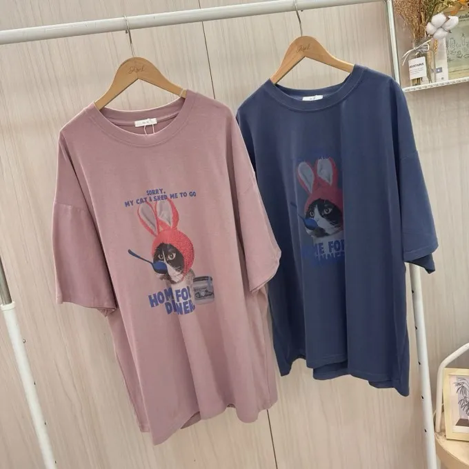 帽貓咪磨毛大版tee_C19