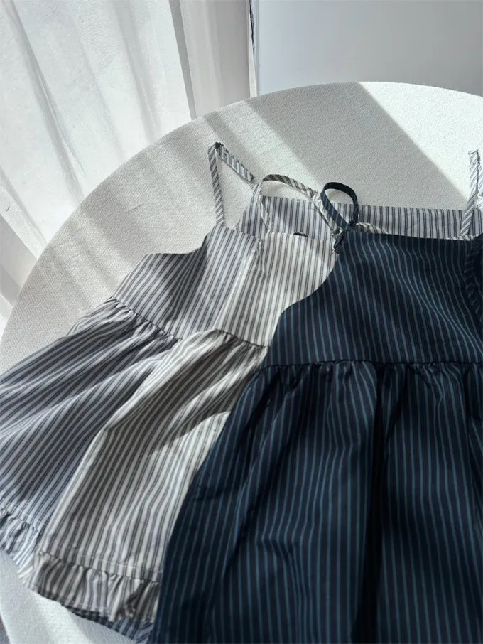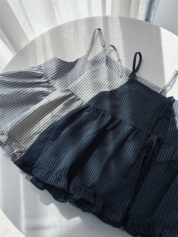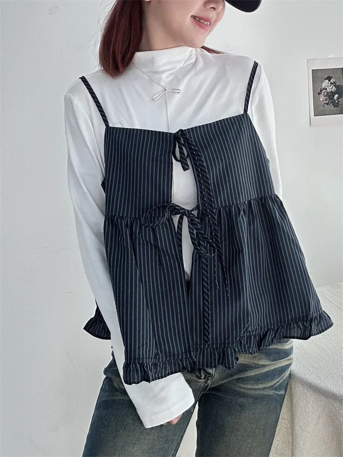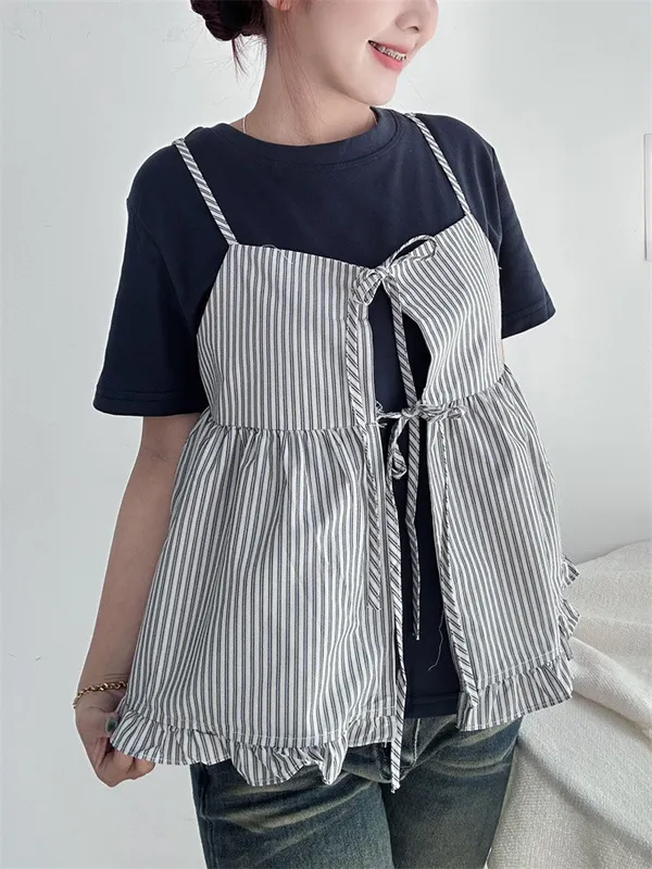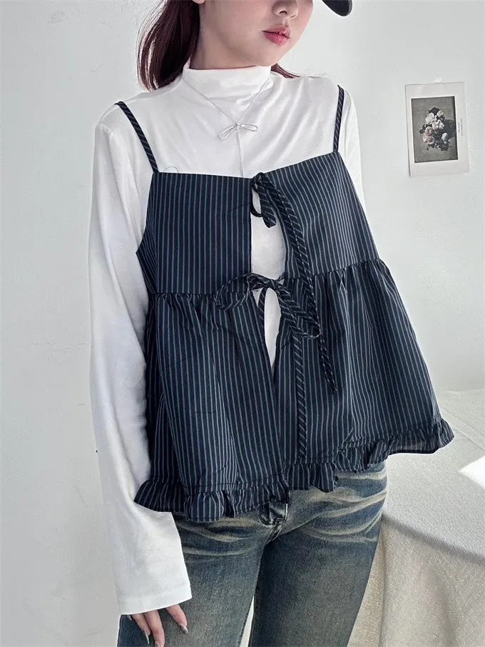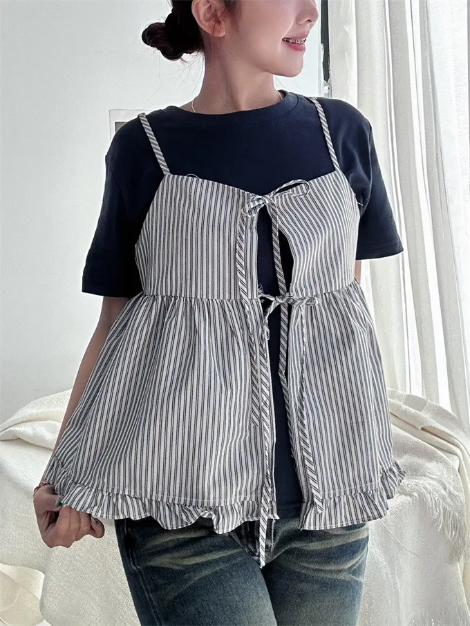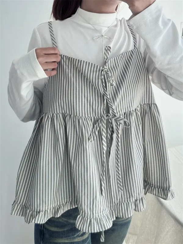 雙綁帶條紋荷葉邊背心_C08