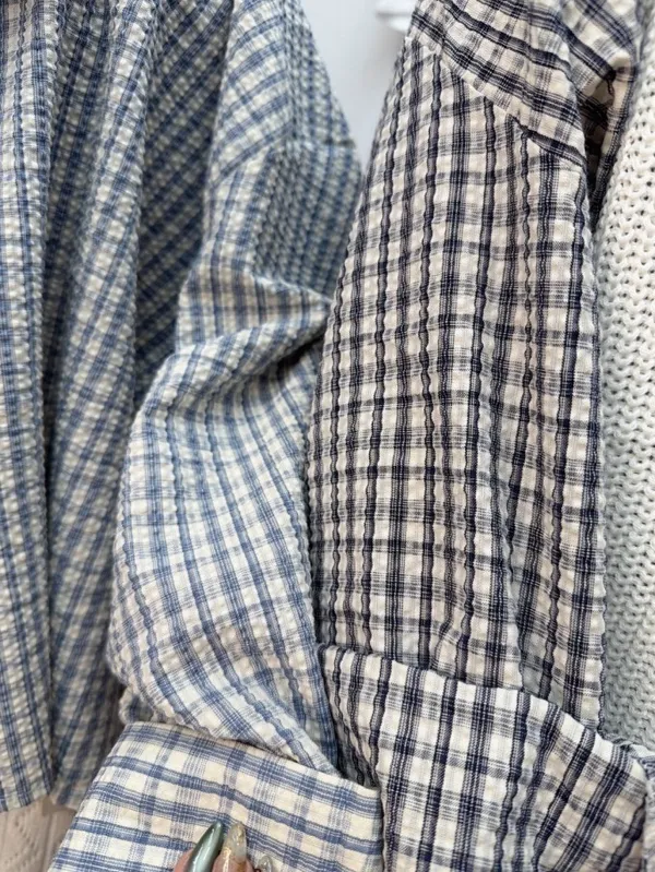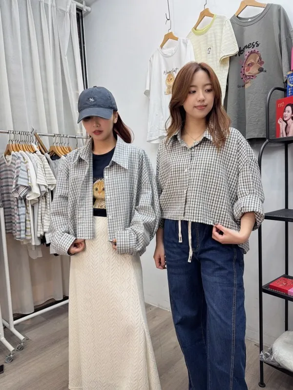 立體格紋前短後長造型襯衫_C13