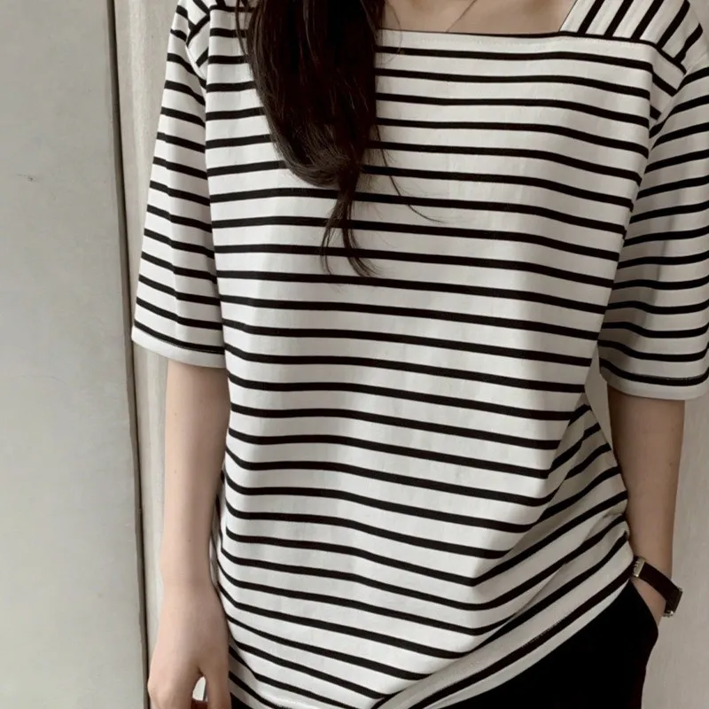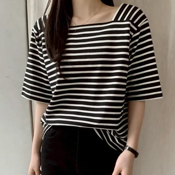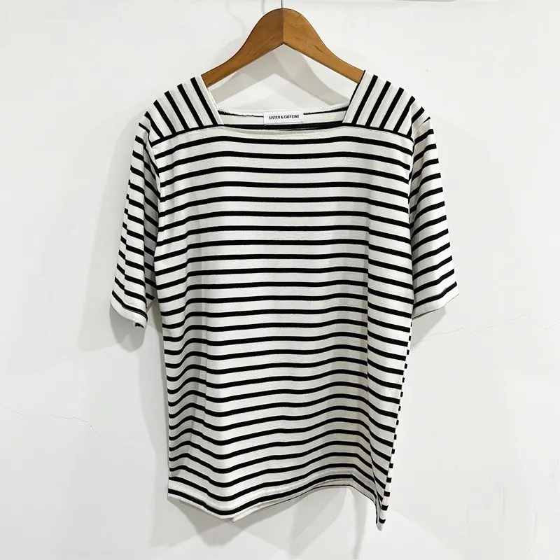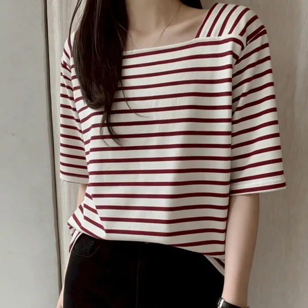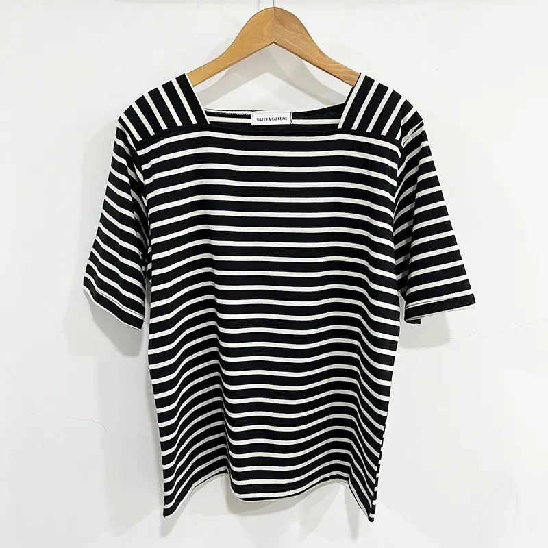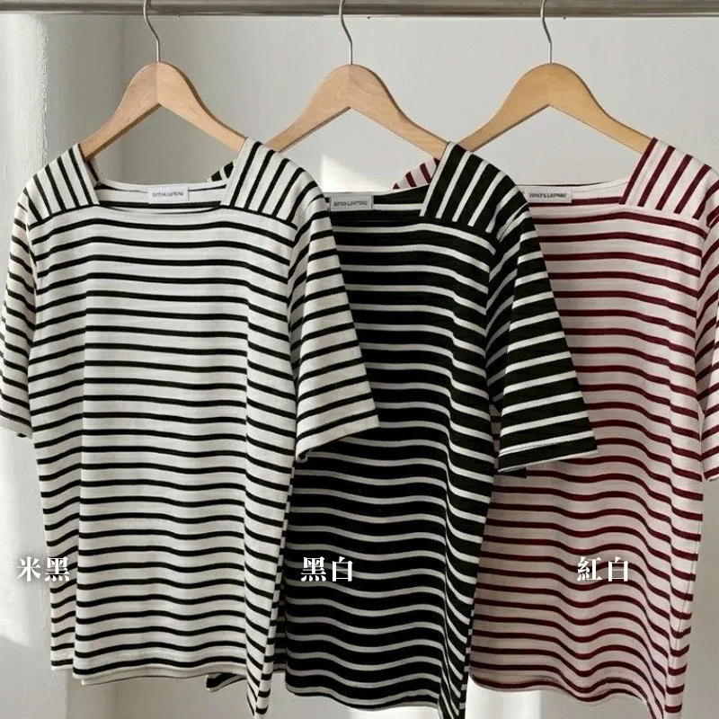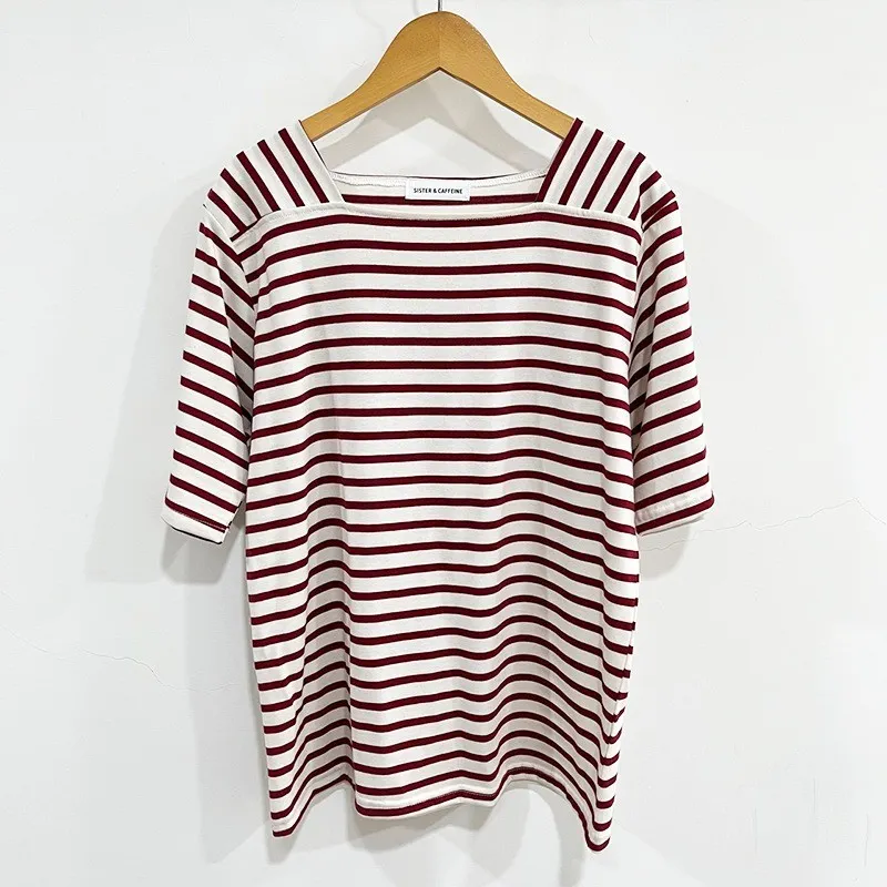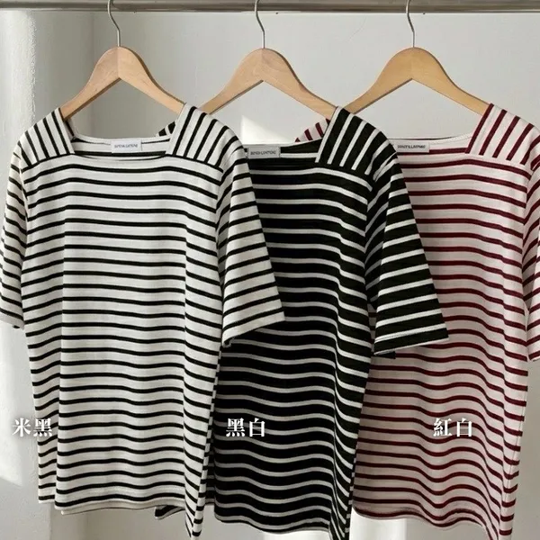 【藏肉神裝! 法式修身方領橫條T】