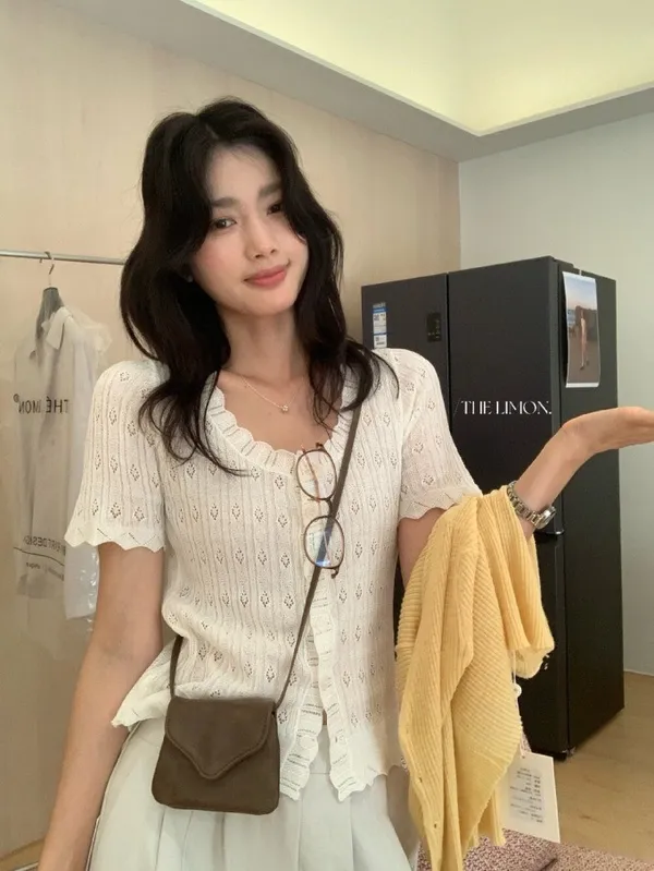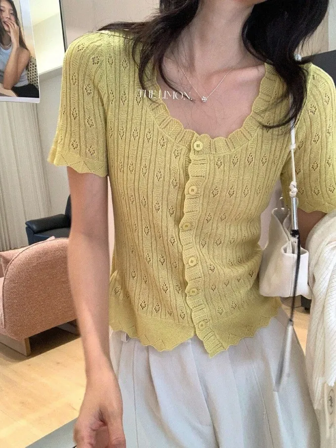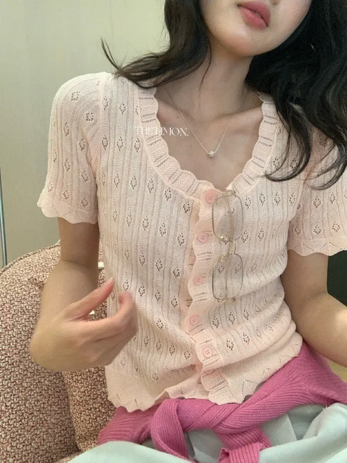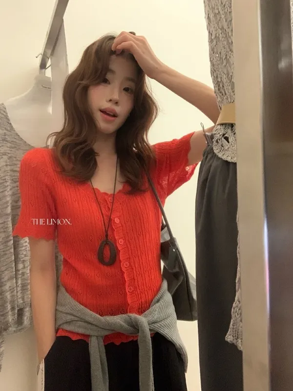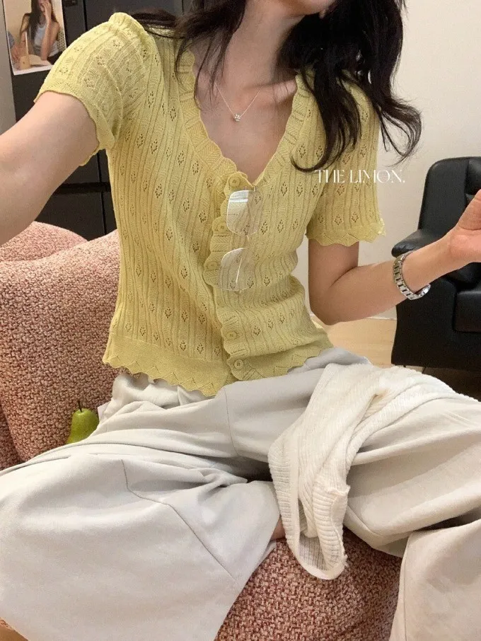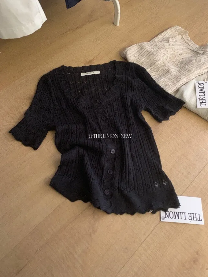 #夏日透氣 | 激瘦波浪V領亞麻針織開衫