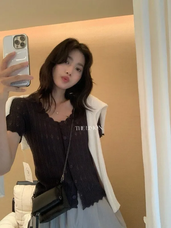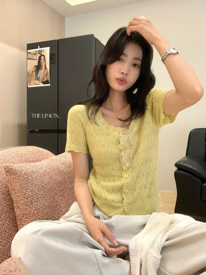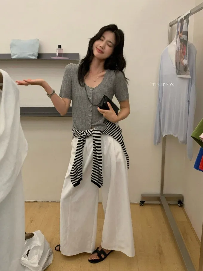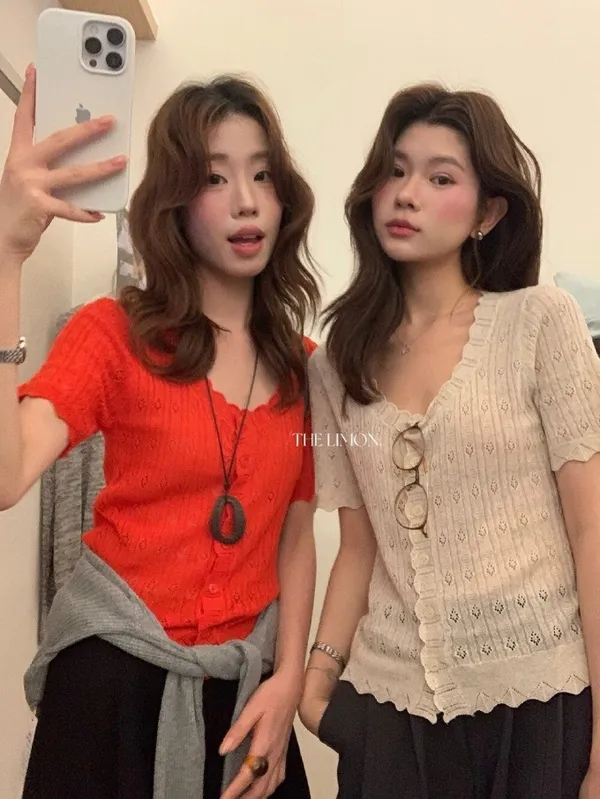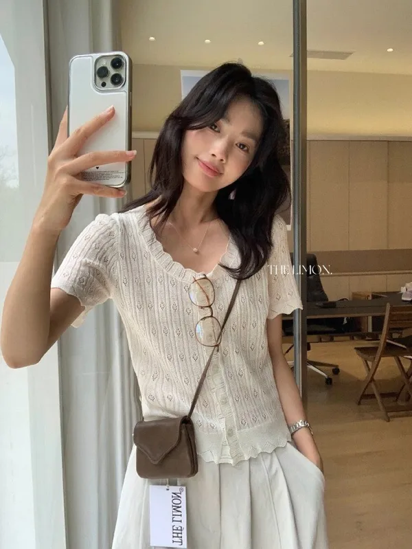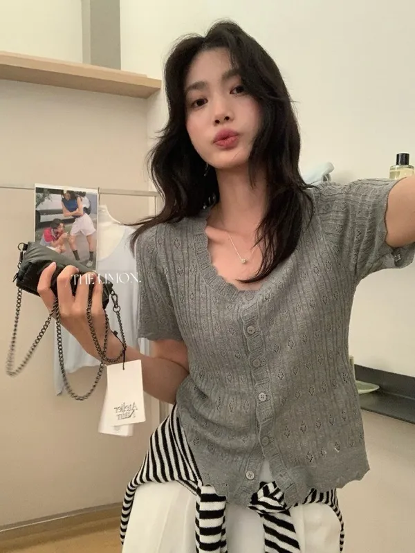 #夏日透氣 | 激瘦波浪V領亞麻針織開衫
