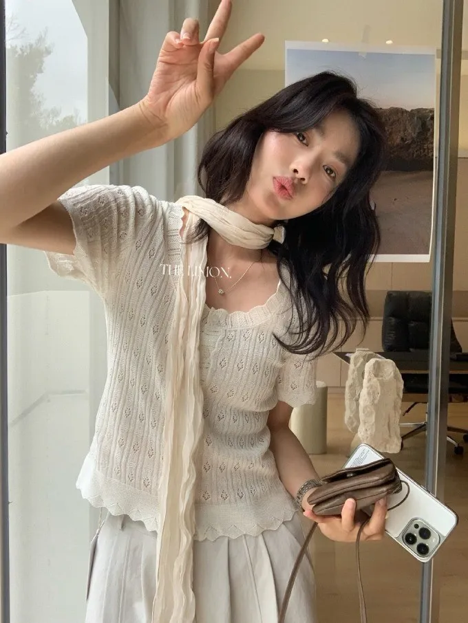 ✓ 波浪領口修飾鎖骨線條