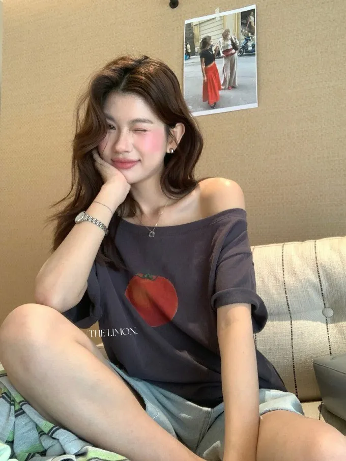 #日常百搭 | 韓系兩穿大番茄斜肩T
