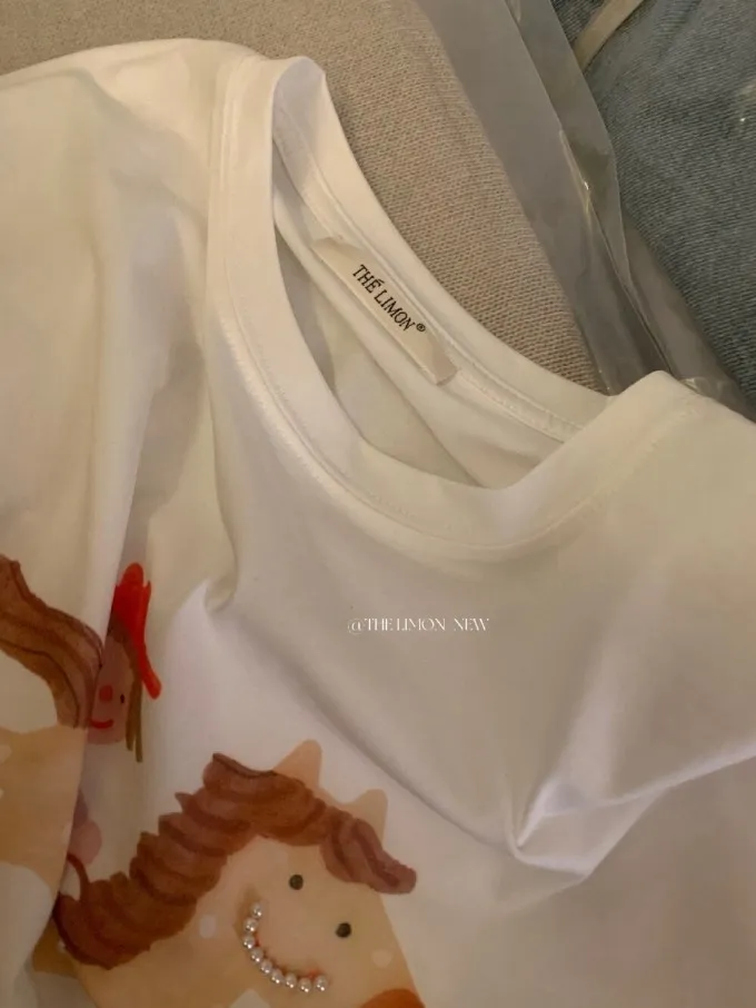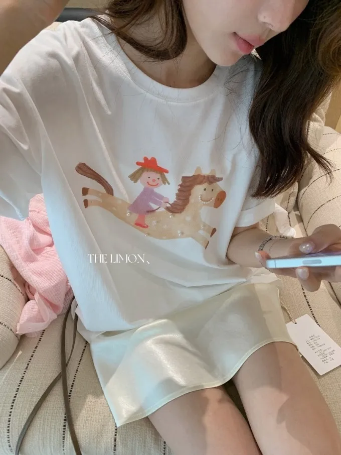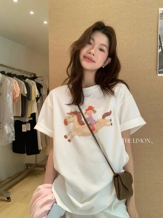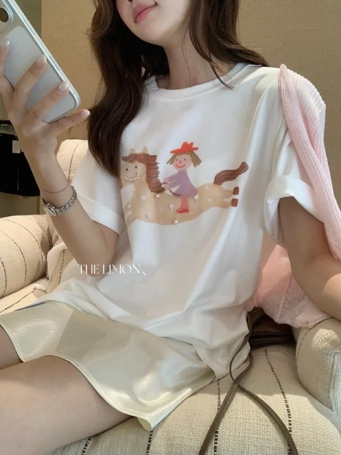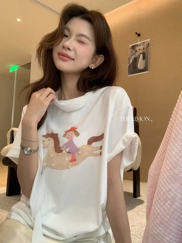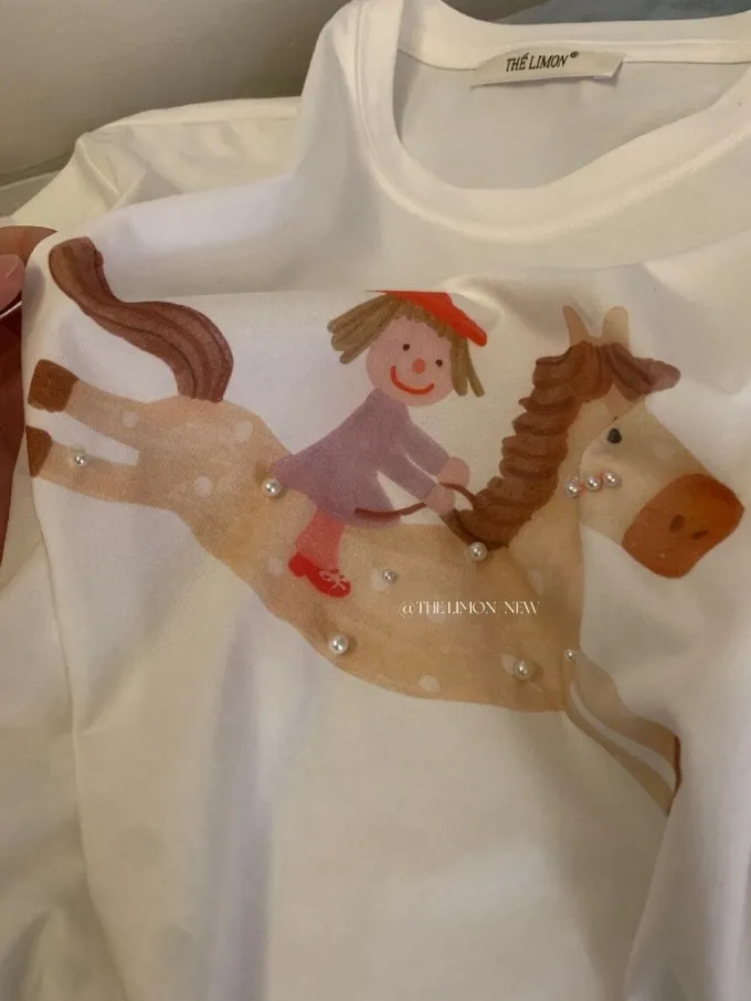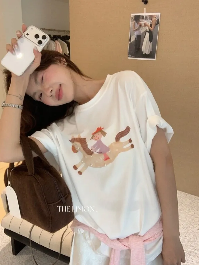 韓系立體釘珠彩色小馬顯瘦T