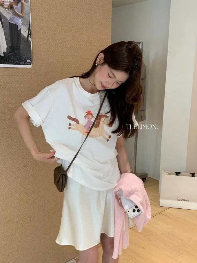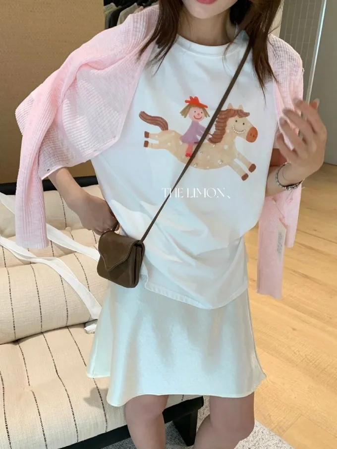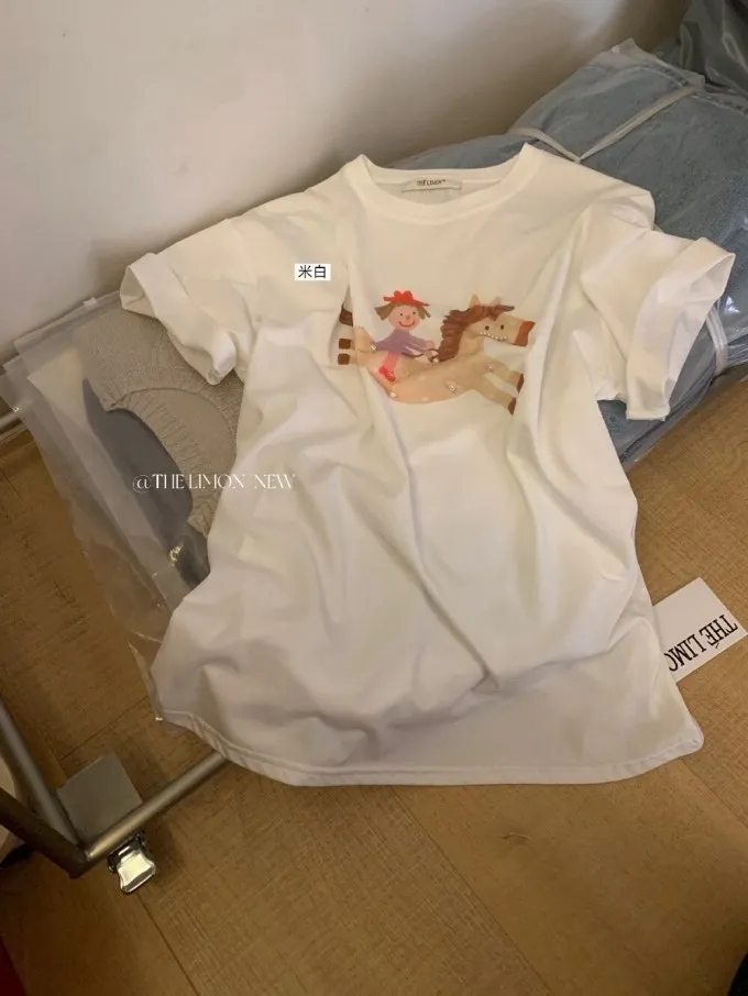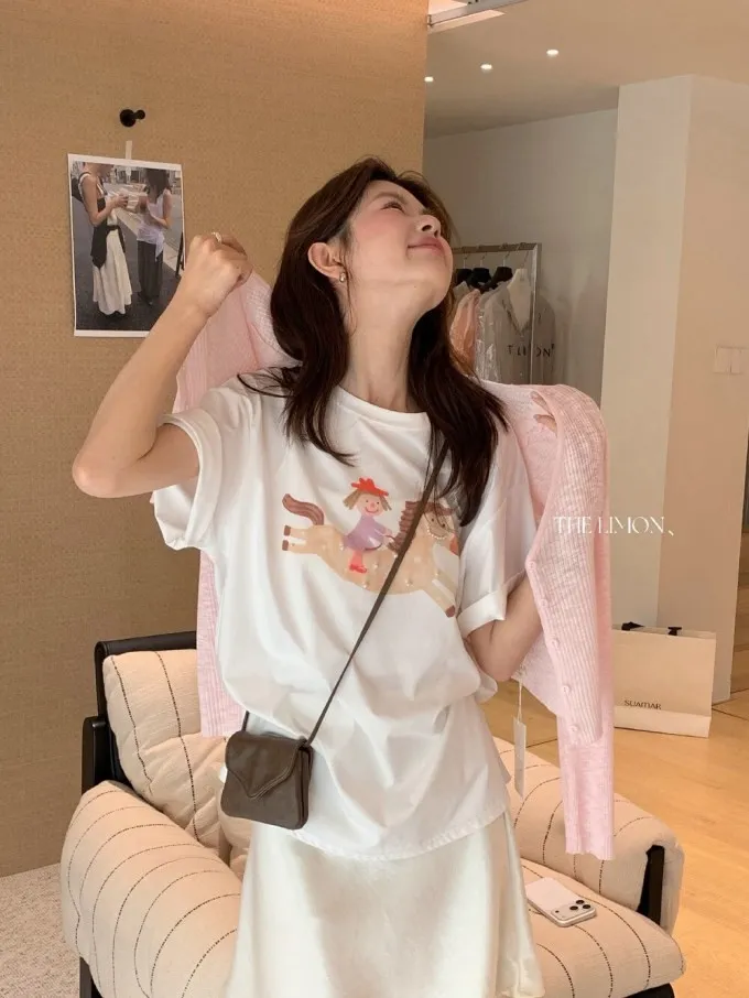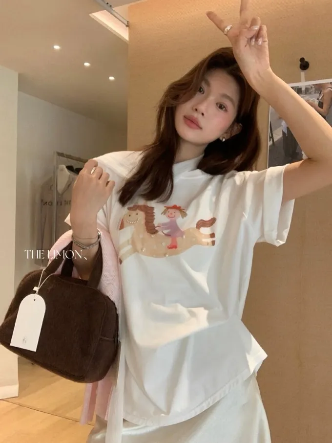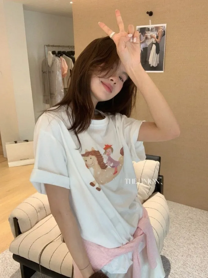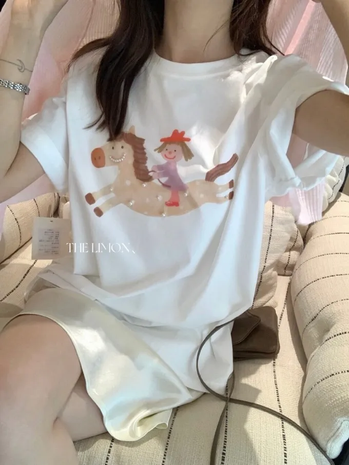 韓系立體釘珠彩色小馬顯瘦T