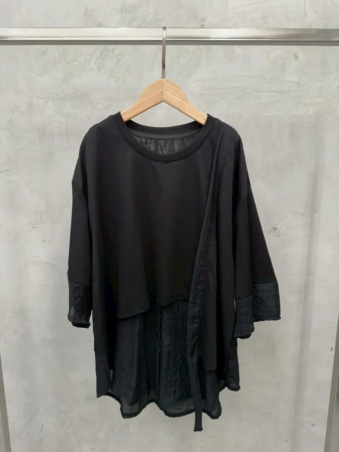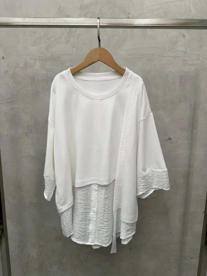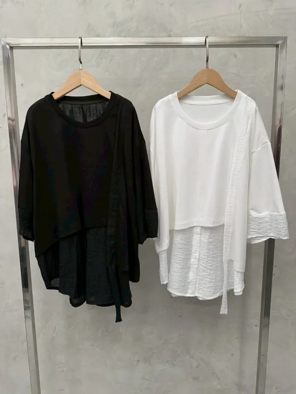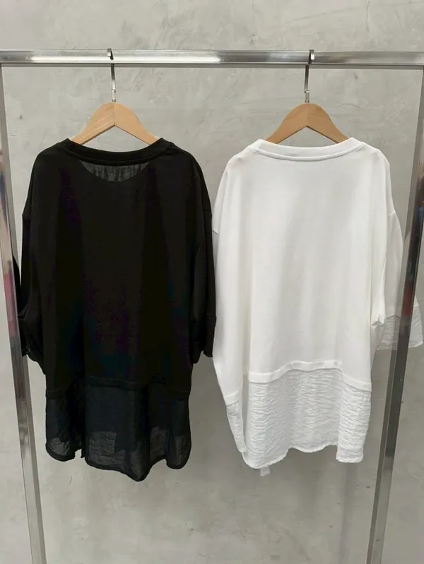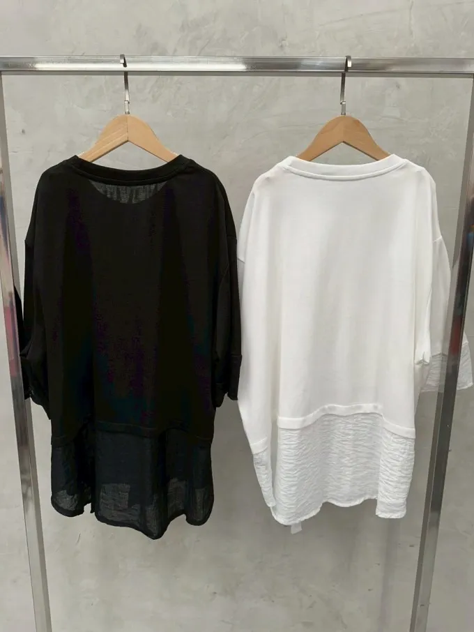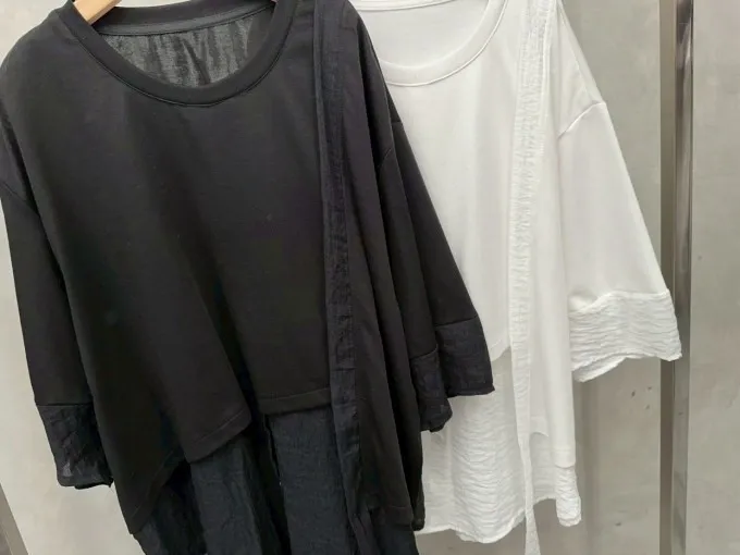 雪紡紗+空氣棉拼接剪裁上衣_G12