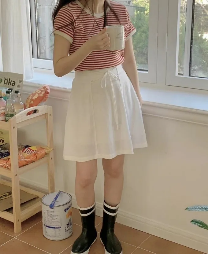 【現貨】韓國 瘦死你馬甲綁帶A字短裙_J55