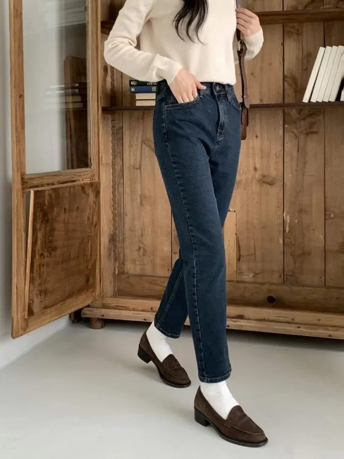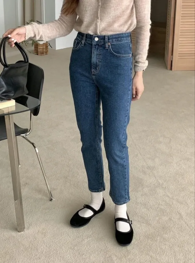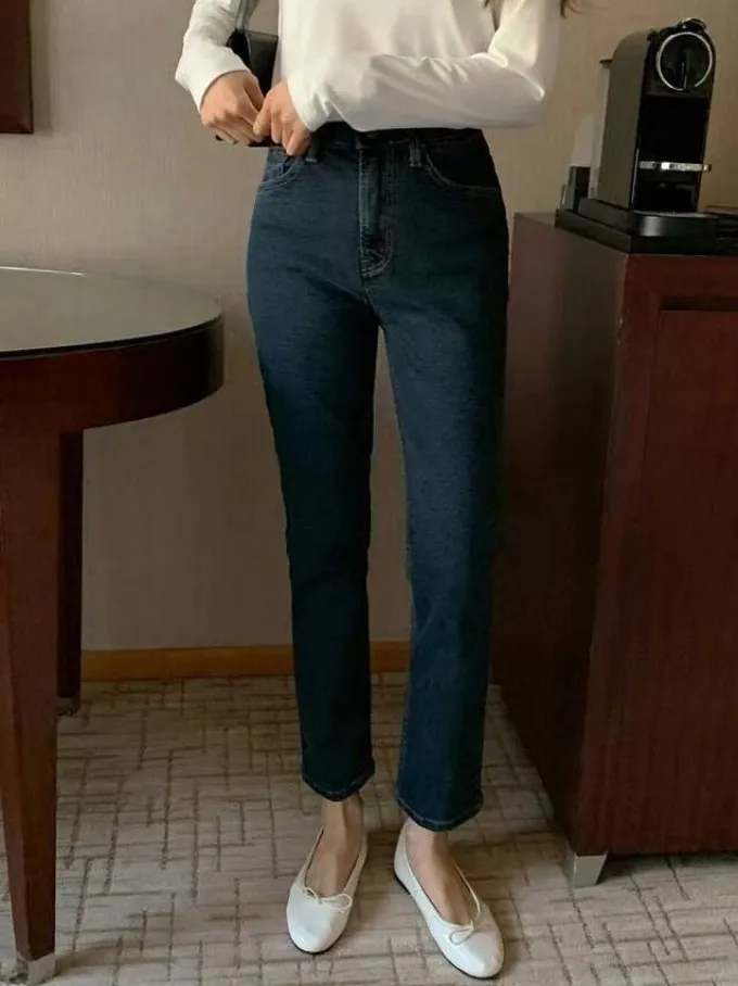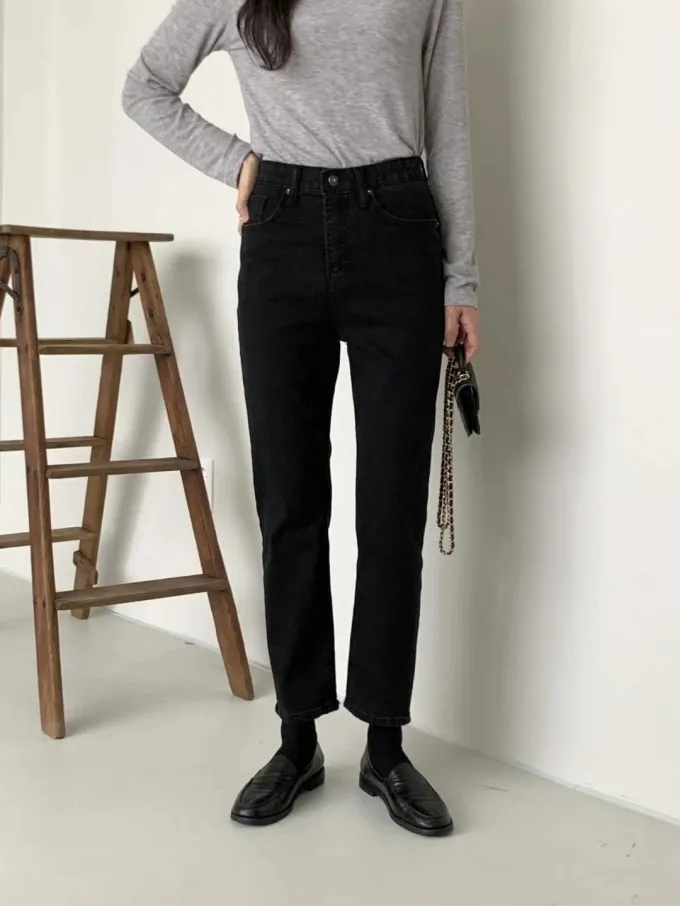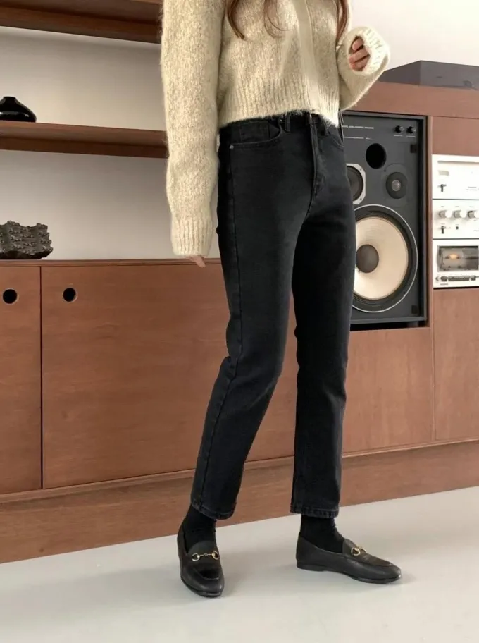 【現貨熱銷】超顯瘦九分直筒牛仔褲(刷薄毛款)_F22
