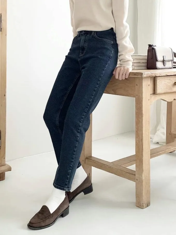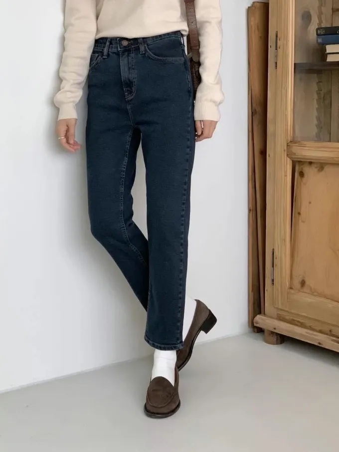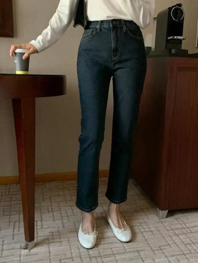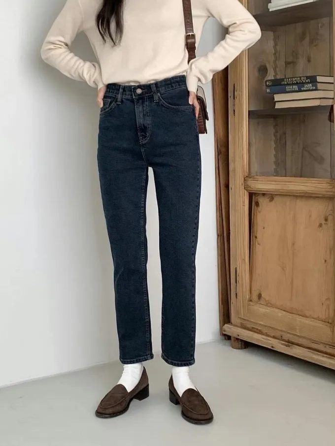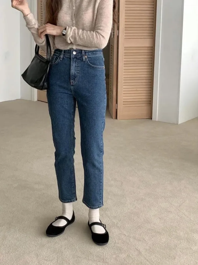 【現貨熱銷】超顯瘦九分直筒牛仔褲(刷薄毛款)_F22