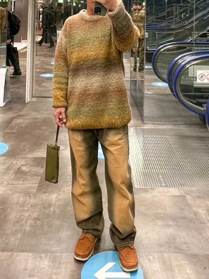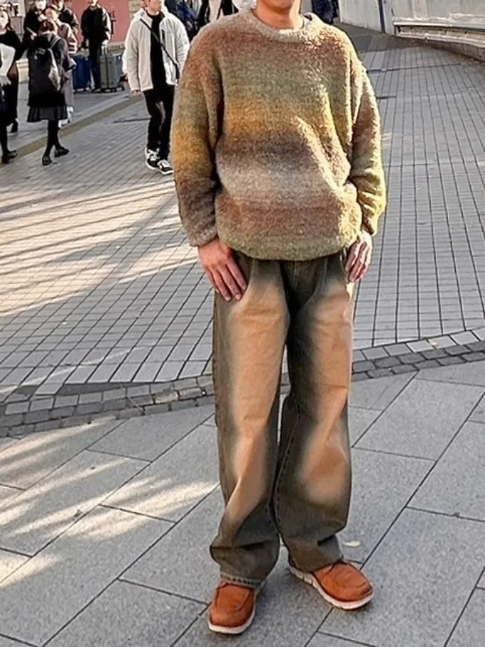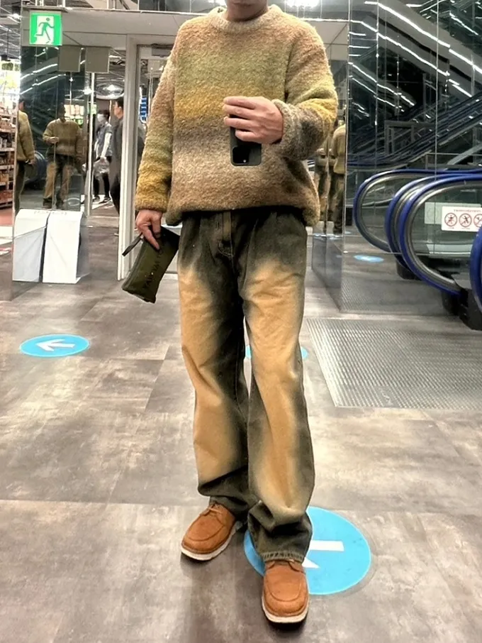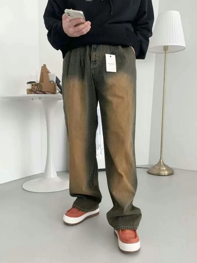 【特價】正韓男裝復古刷舊古著牛仔落地寬褲