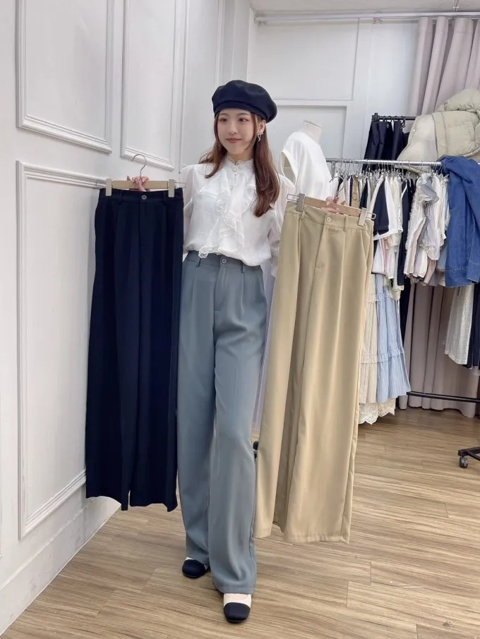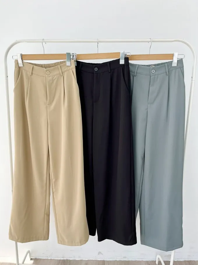 【現貨】氣質鬆緊腰打褶西裝寬褲_J31