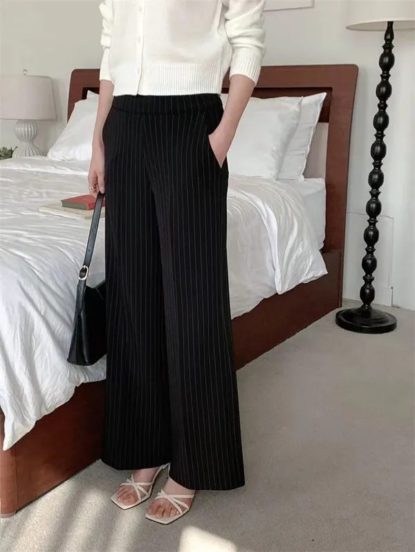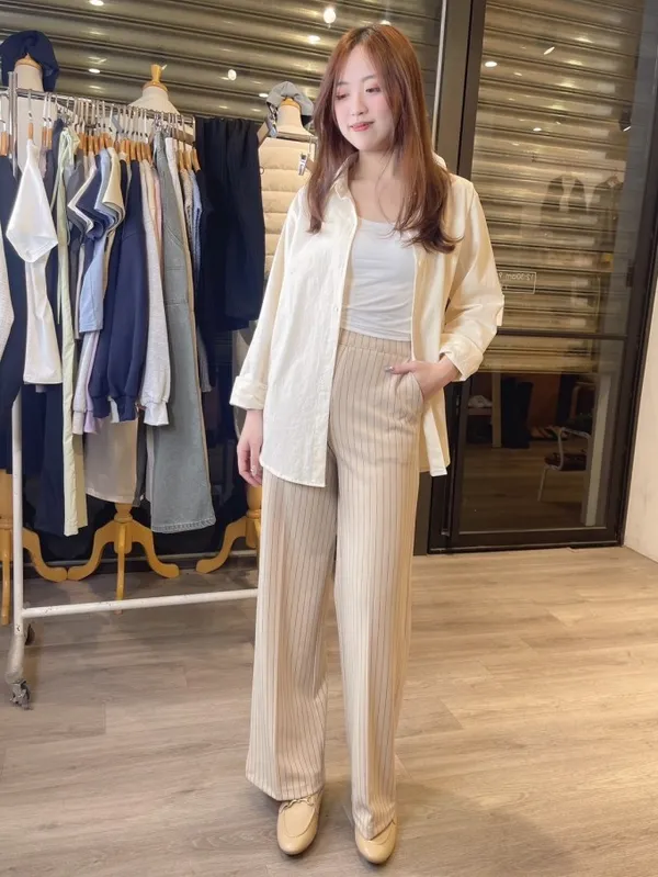 【熱銷】韓國新款 收腹家直紋寬褲_F21